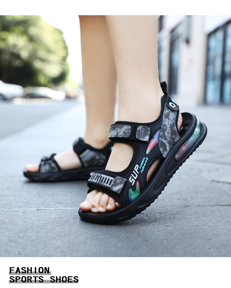 소년 샌들 2024 새로운 여름 어린이 신발 소프트 단독 어린이 비치 신발 미드 빅 어린이 스포츠 에어 쿠션 샌들 트렌디