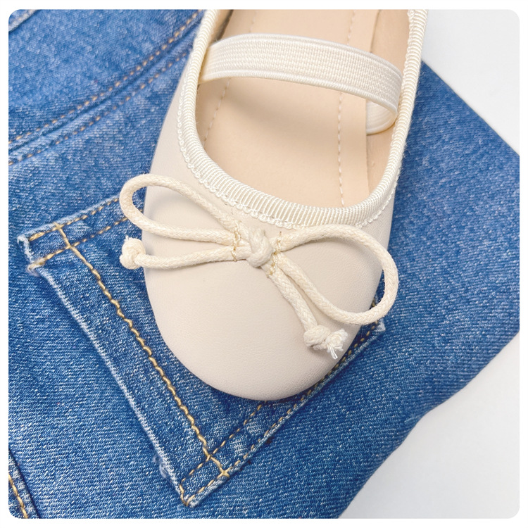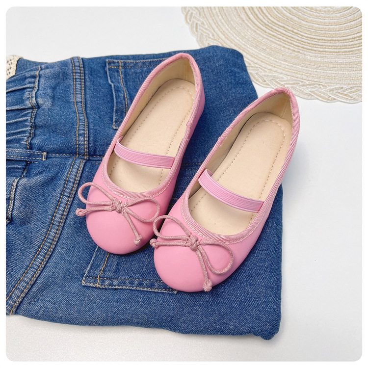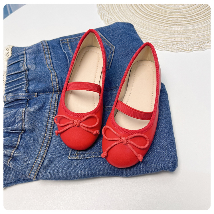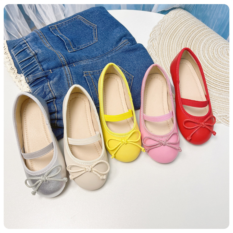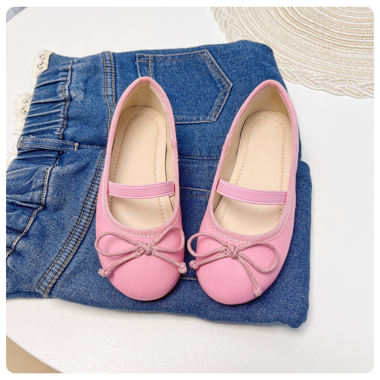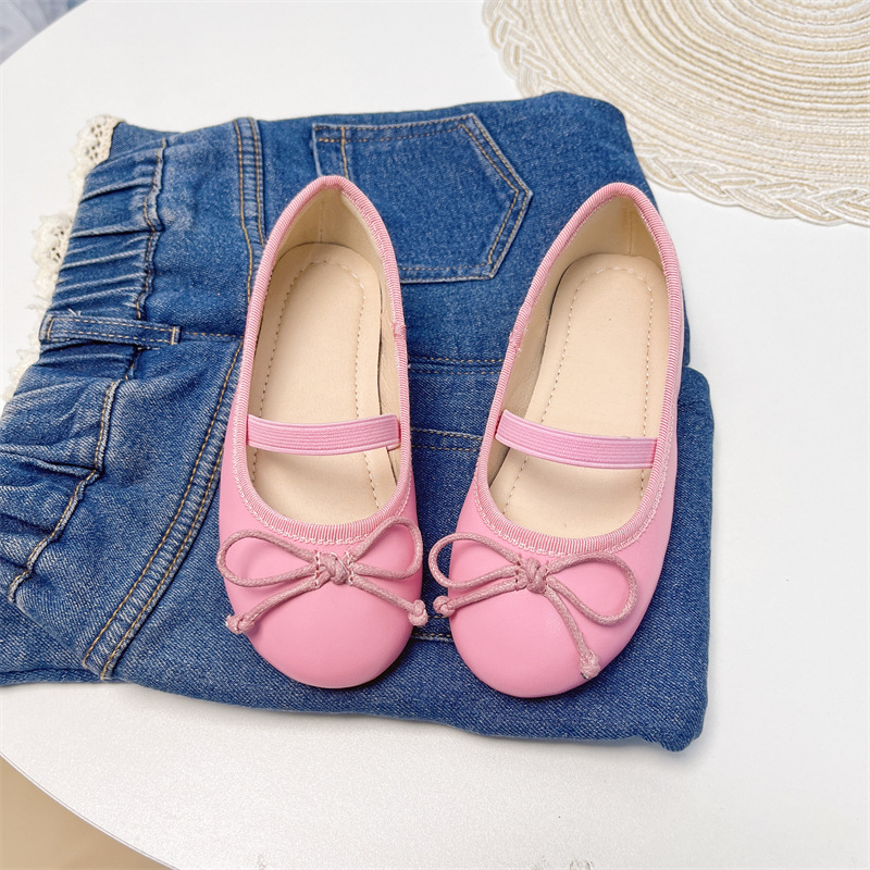 여자 공주 신발 2025 어린이 패션 탄성 밴드 춤 발레 부드러운 밑창 가죽 신발 어린 소녀 나비 매듭 신발스토어 가기