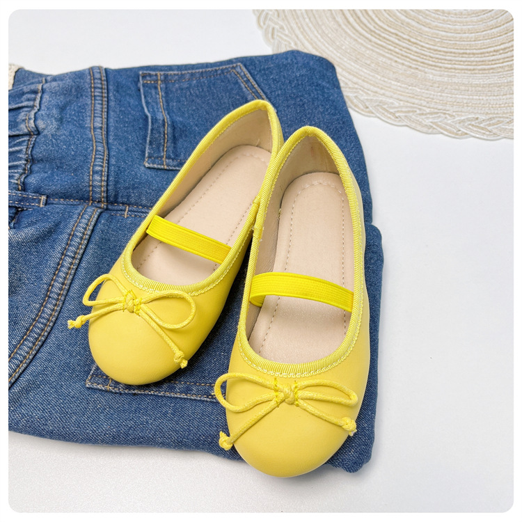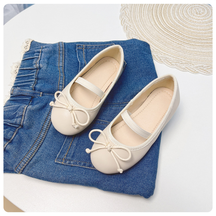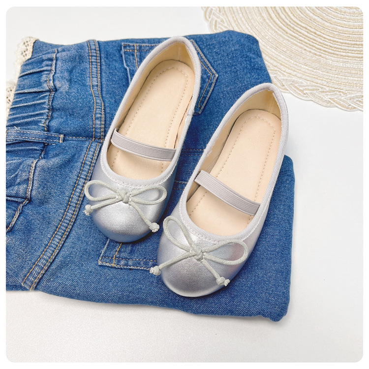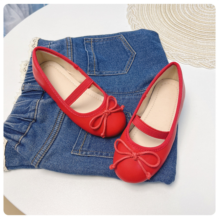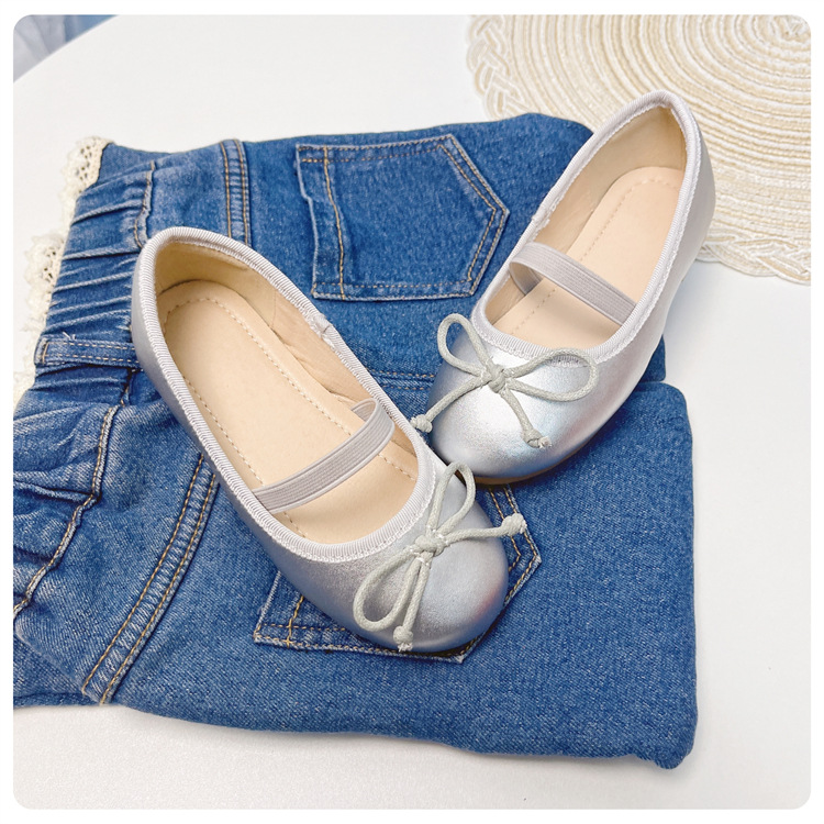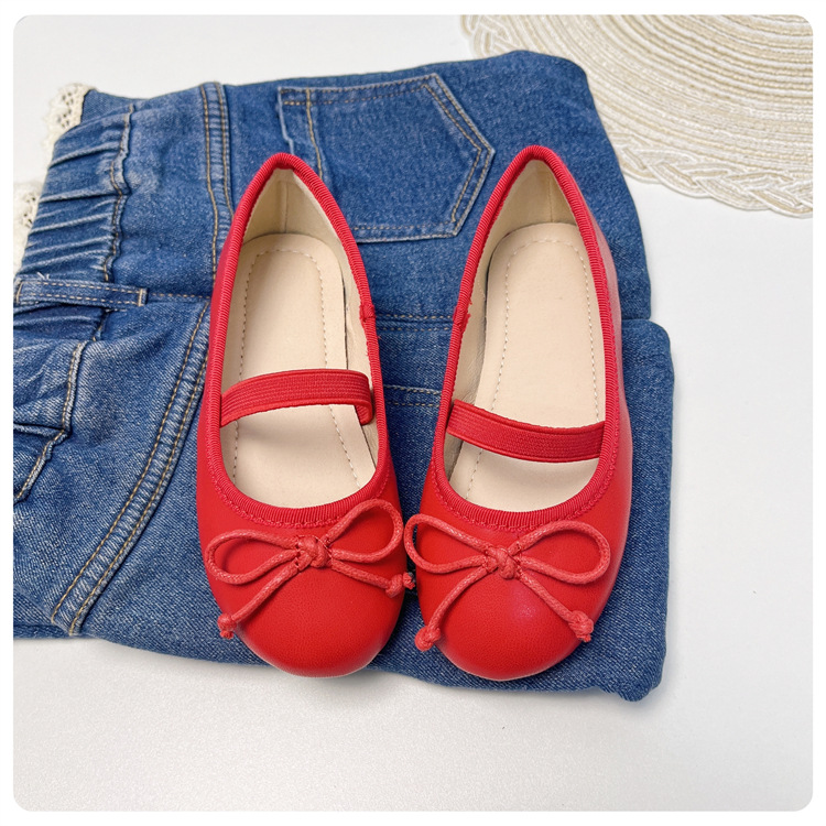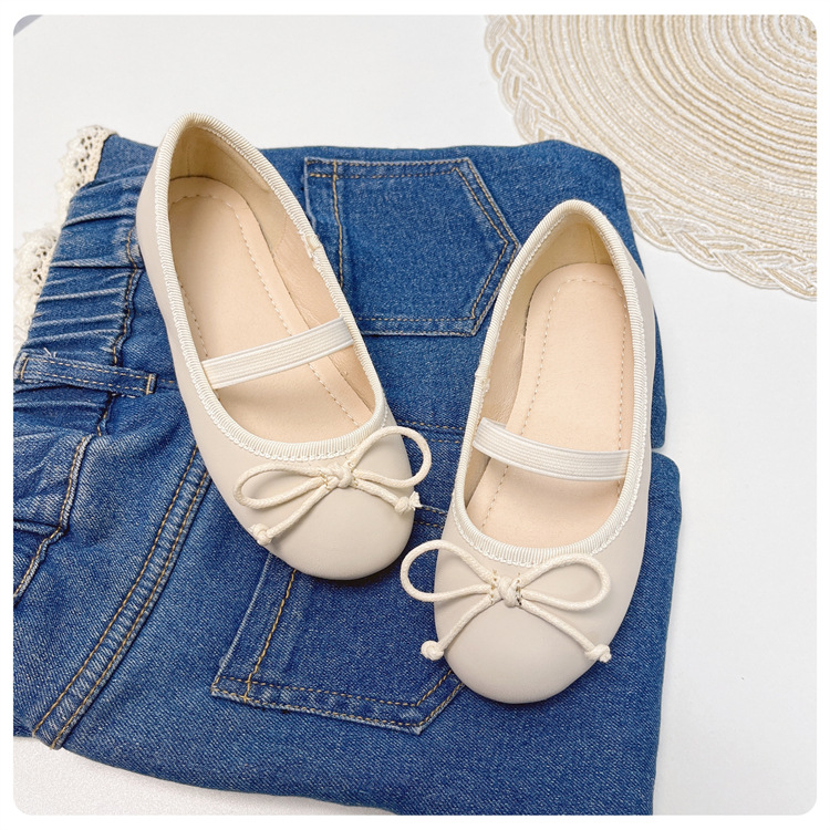 여자 공주 신발 2025 어린이 패션 탄성 밴드 춤 발레 부드러운 밑창 가죽 신발 어린 소녀 나비 매듭 신발스토어 가기