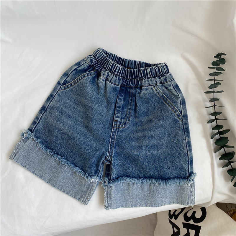 GL-키즈 한국 스타일 여름 새로운 어린이 레트로 올드 데님 반바지 남녀 청바지 5 점 중형 바지스토어 가기