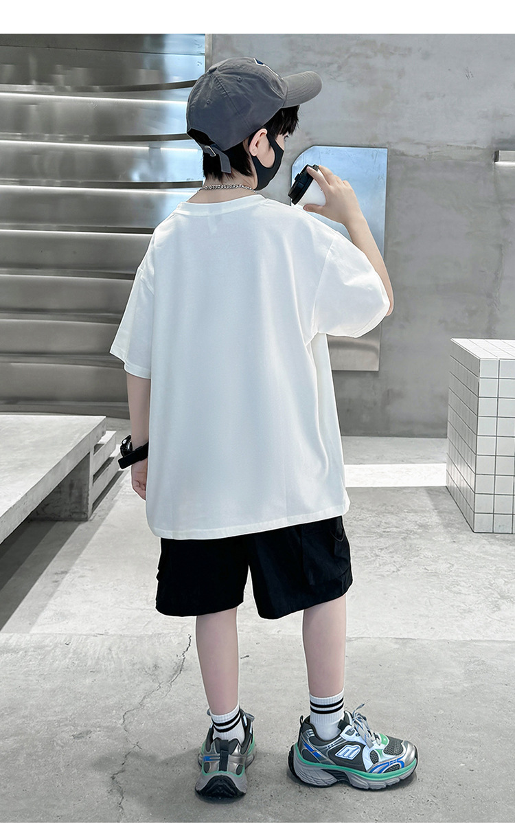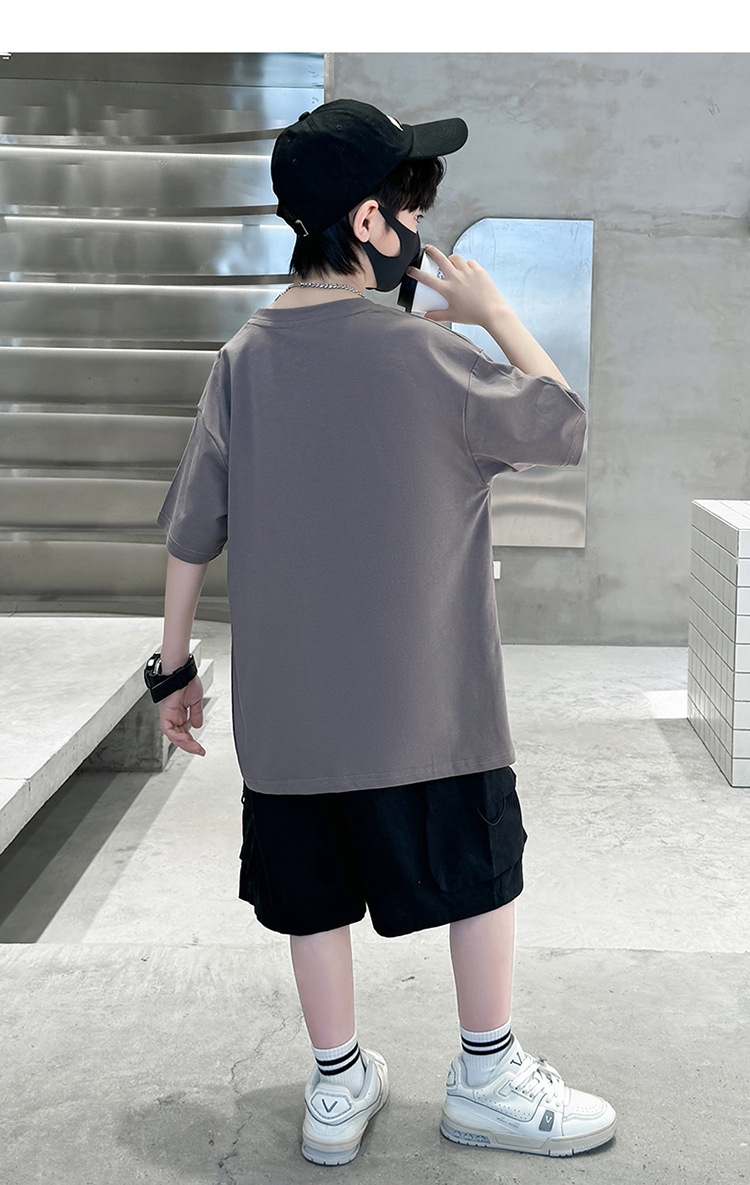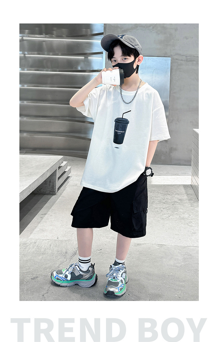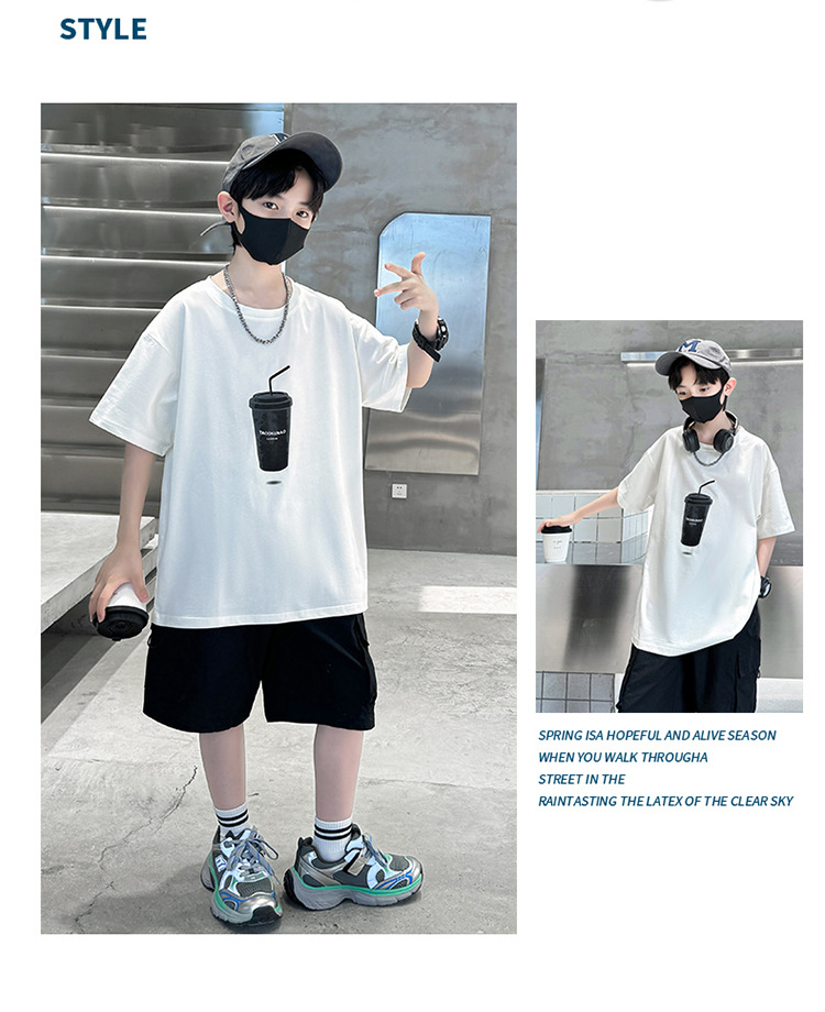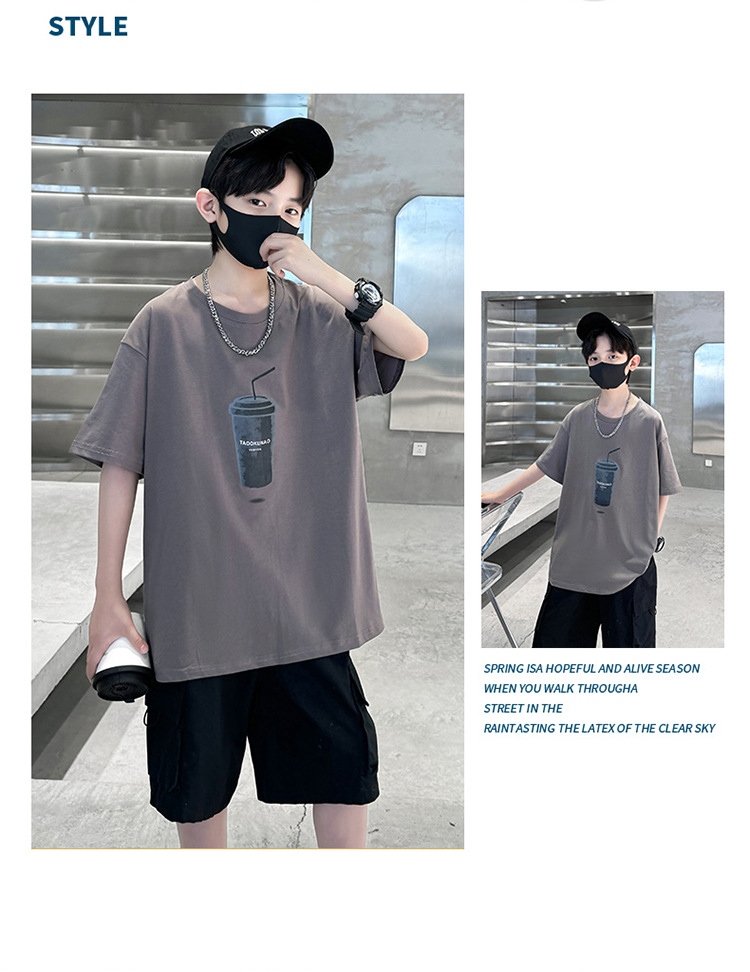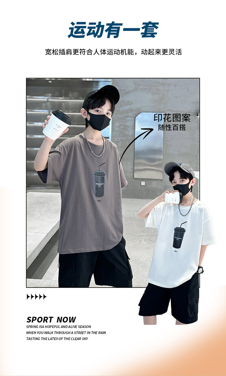 남자들의 여름 반소매 티셔츠 2024 새로운 탑 큰 어린이 여름 패션 브랜드 찻잔 인쇄 소년의 반소매스토어 가기
