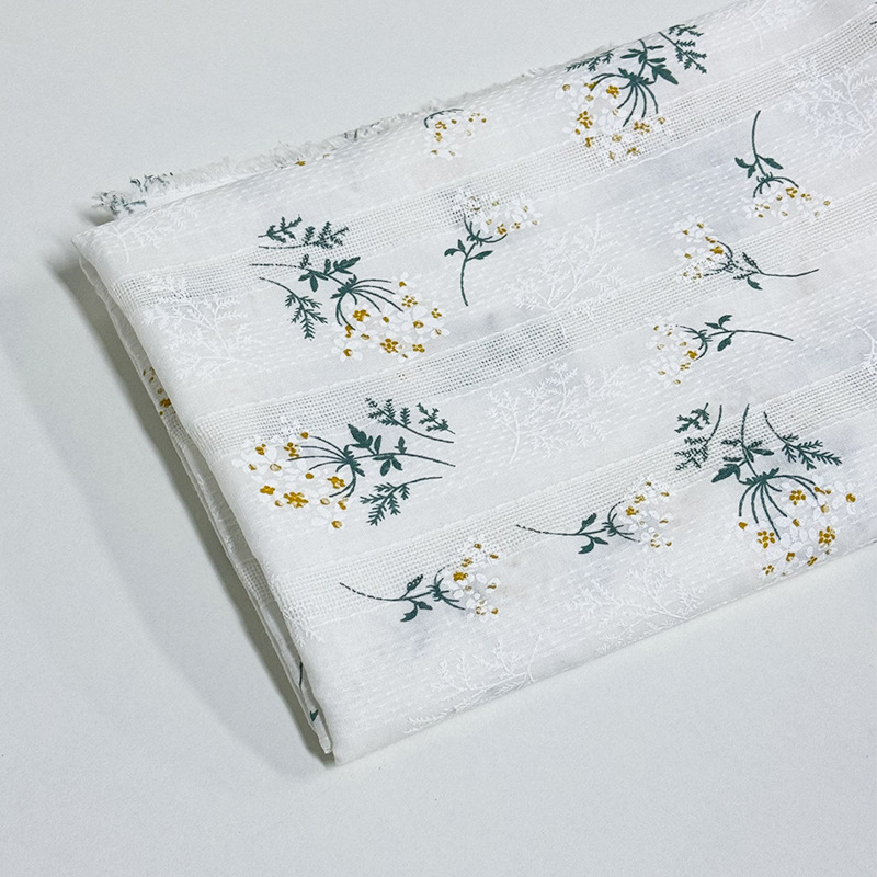 재고 코튼 자카드 직물 목가적 스타일 데이지 꽃 거품 인쇄 원피스 셔츠 순수한면 직물