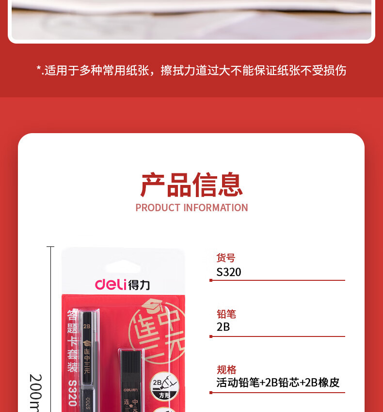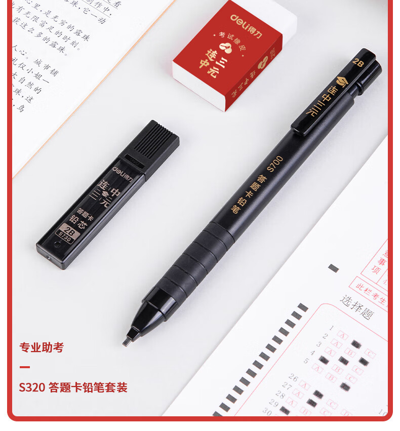 델리 테스트 특수 카드 코팅 펜 세트 답변 카드 자동 연필 기계 카드 리더 2B 연필 3 피스 세트 S320