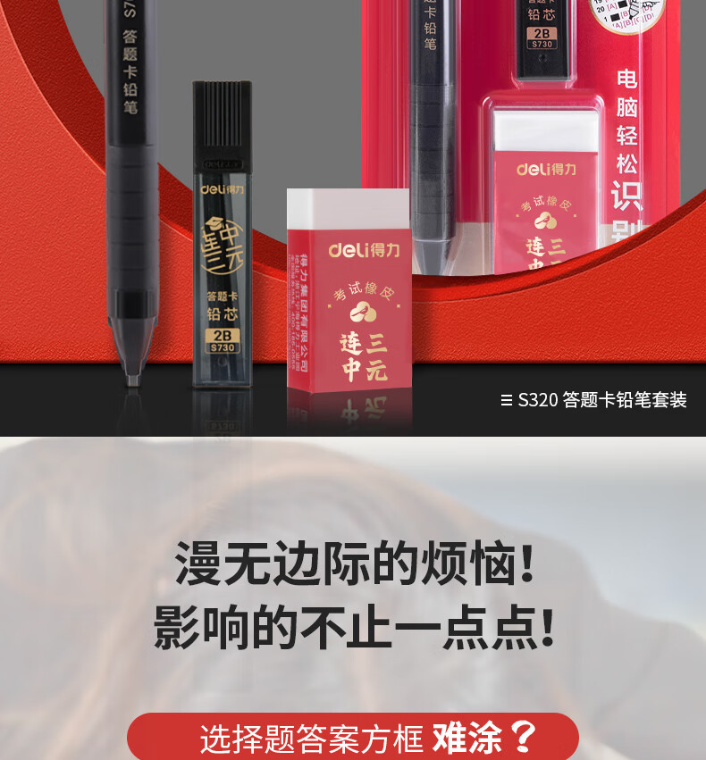 델리 테스트 특수 카드 코팅 펜 세트 답변 카드 자동 연필 기계 카드 리더 2B 연필 3 피스 세트 S320스토어 가기