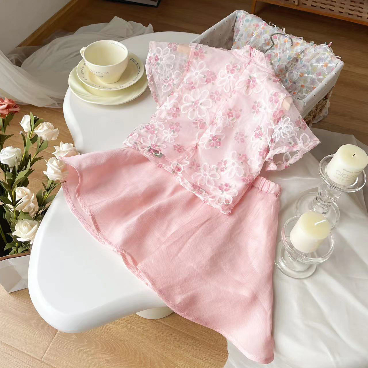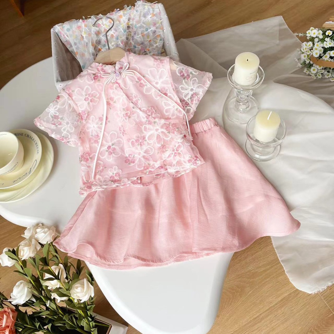 [현장] XT249158 여름 새로운 어린이 세트 소녀 복고풍 국가 스타일의 기질 세트 여성 보물 두 조각스토어 가기