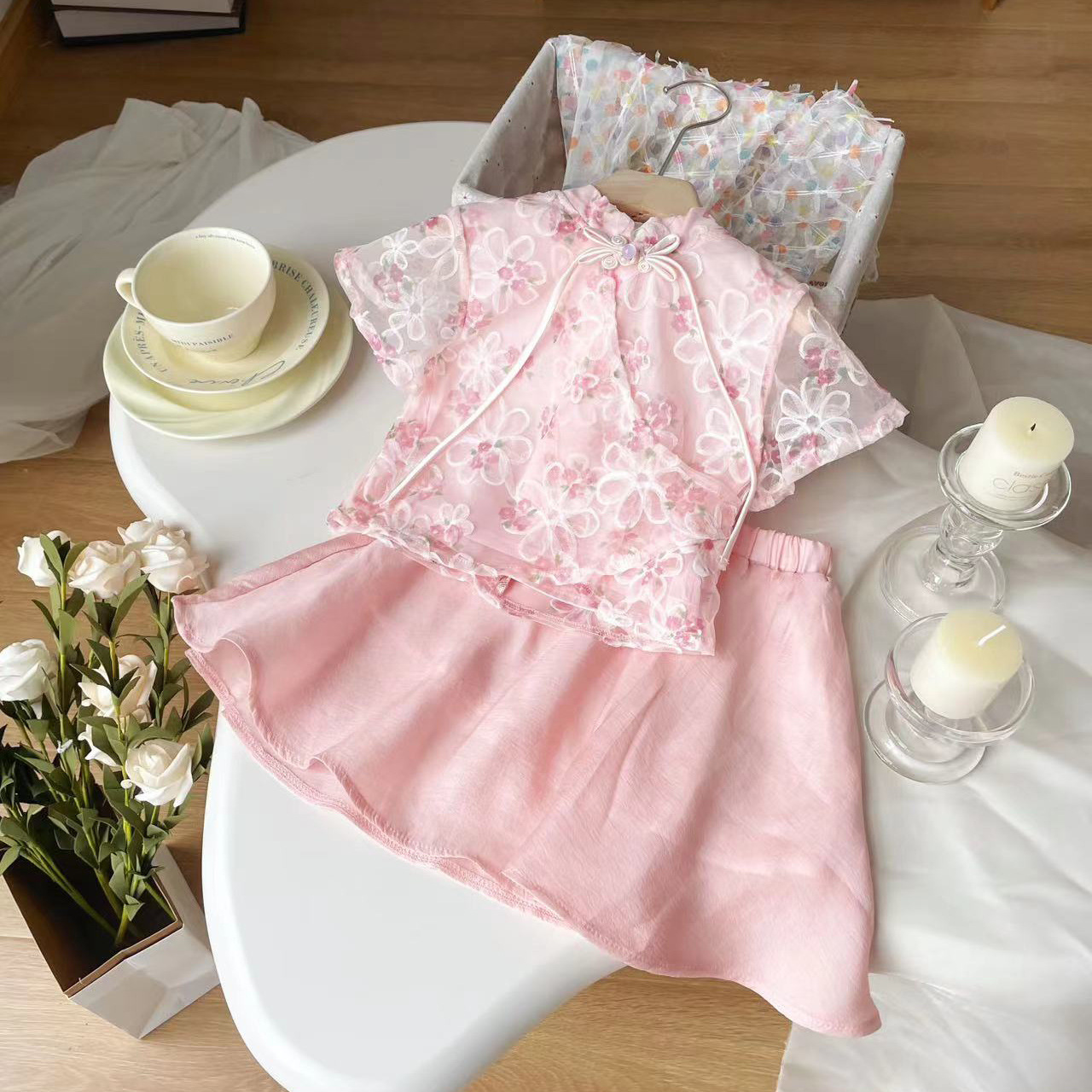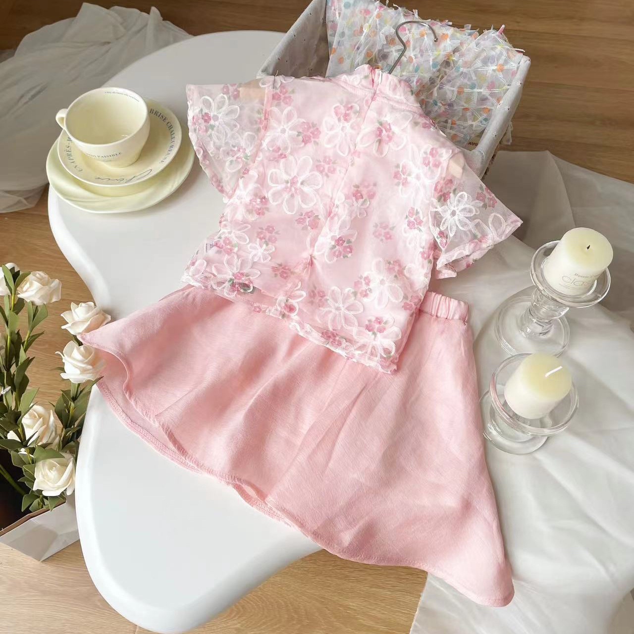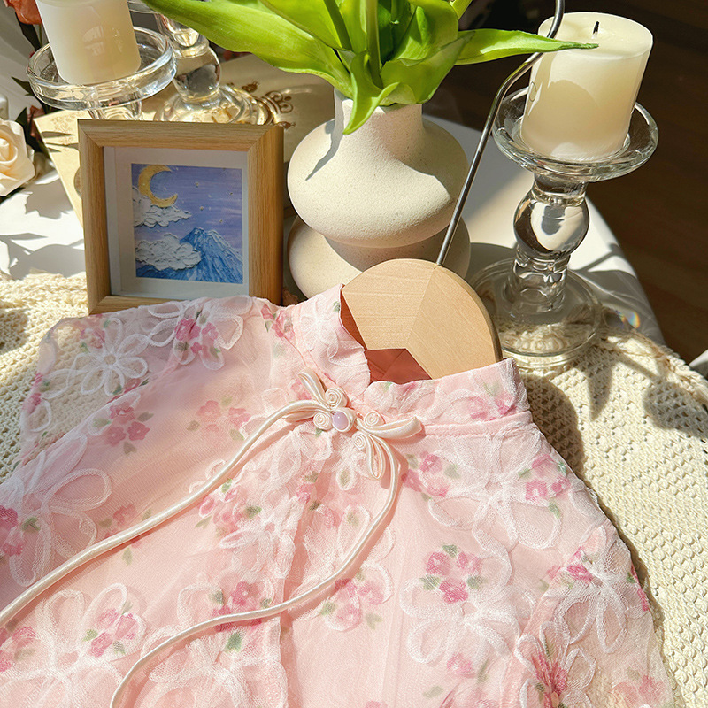 [현장] XT249158 여름 새로운 어린이 세트 소녀 복고풍 국가 스타일의 기질 세트 여성 보물 두 조각