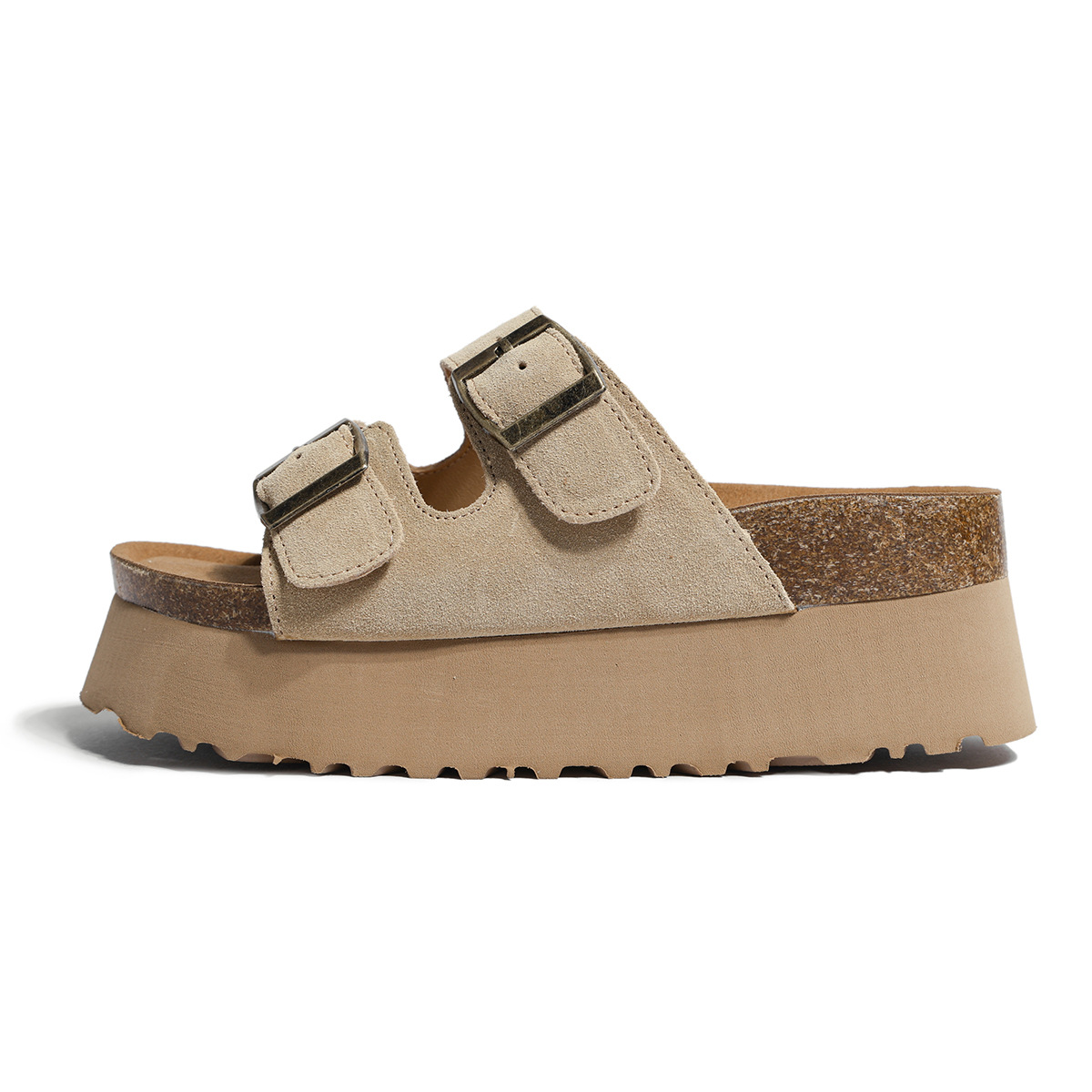 플랫폼 슬리퍼 Birkenn 슬리퍼 여성용 정품 가죽 여름 의상 일본 쇼티 신발 강화 7CM Birkenn 비치 신발스토어 가기