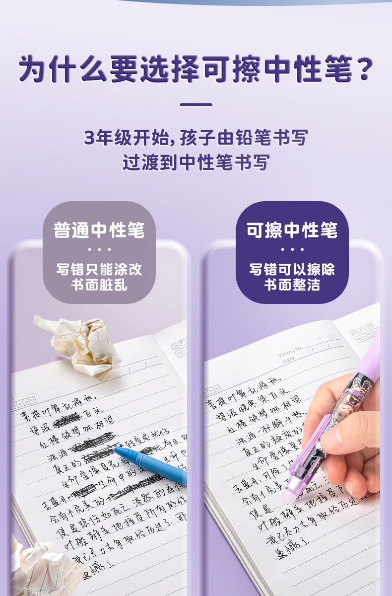 초등학생을위한 특별한 귀여운 남성과 여성의 지울 수있는 열 민감한 펜 바람 마법 지울 수있는 펜 지울 수있는 젤 펜 선물 상자