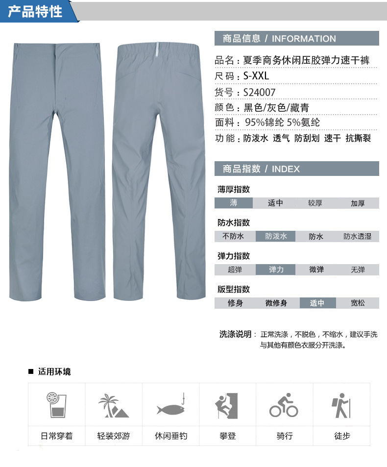 Niajiaping 스트레치 고속 건조 바지 여름 비즈니스 통기성 야외 스포츠 등반 바지