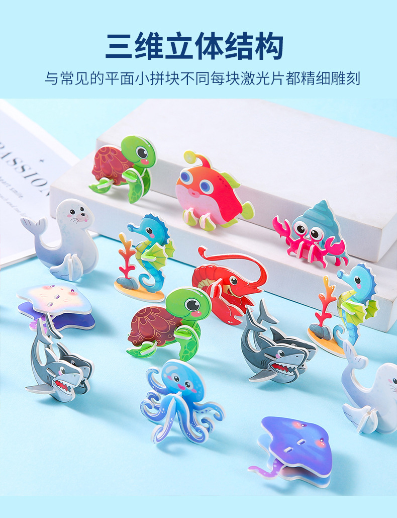 3D 동물 직소 퍼즐 어린이 곤충 DIY 장난감 유아 교육 손으로 조립 된 작은 해저 조각