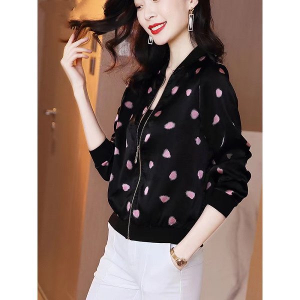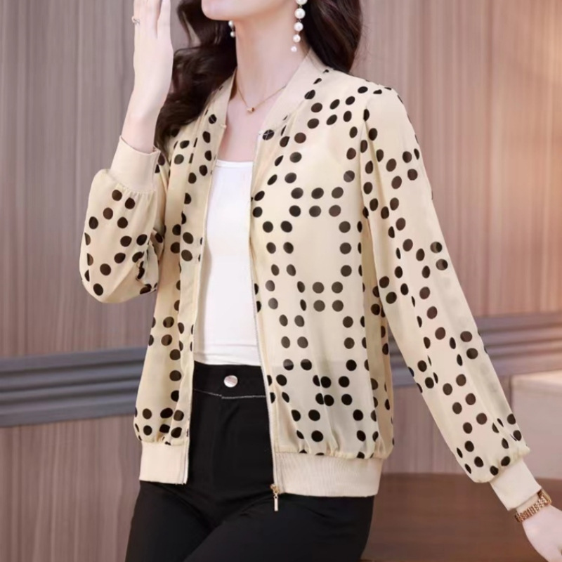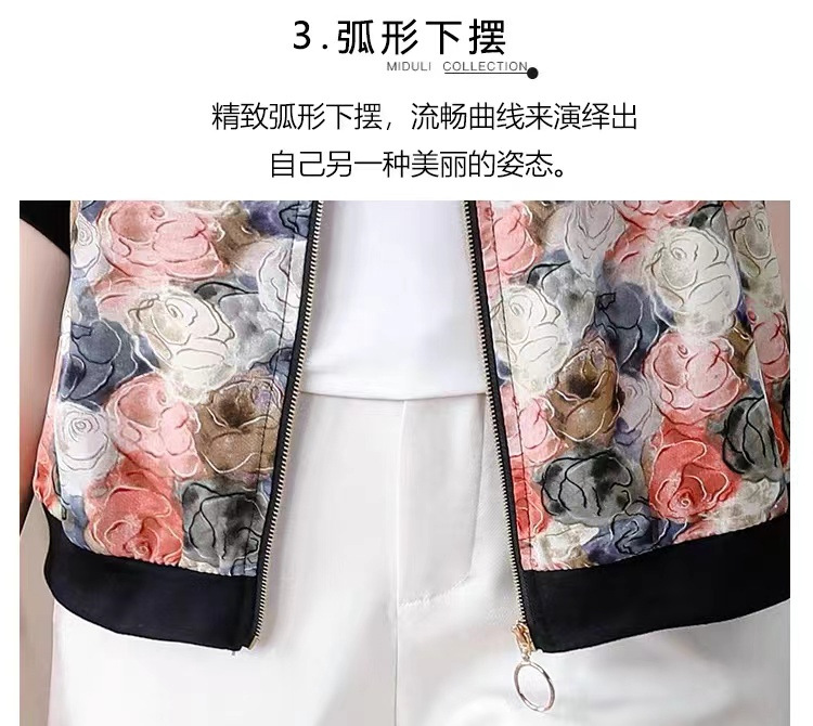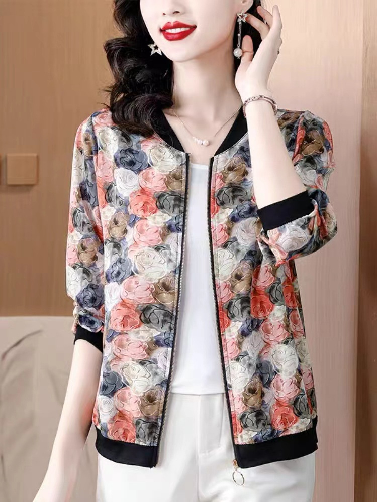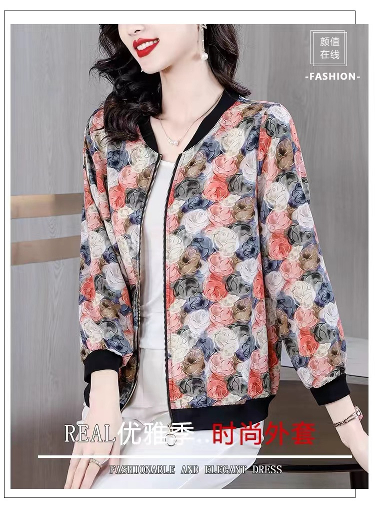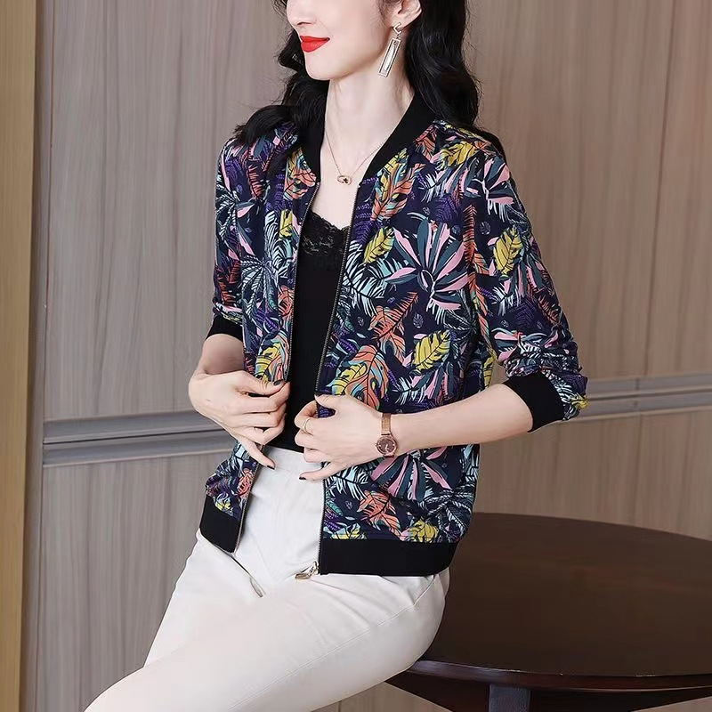 2024 년 여름 새로운 중년 어머니 야구 세트 코트 여성 인쇄 지퍼 재킷 유행 쉬폰 선스크린 셔츠스토어 가기