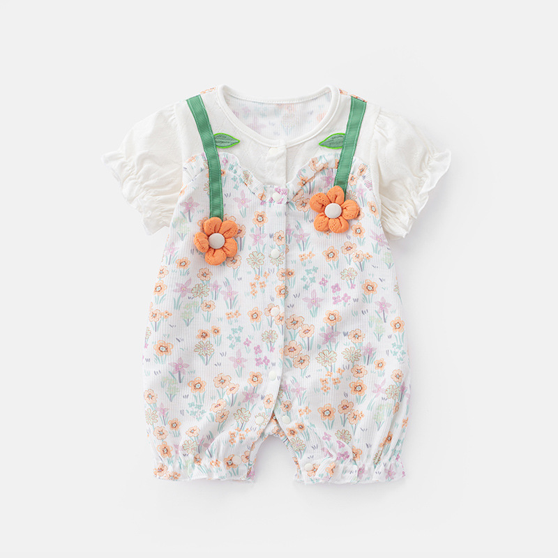 2024 년 여름 새로운 하카 옷 아기 스타일러스 꽃 콤폰 옷 신생아 아기 소녀 스트랩 백 패션 짧은 등반 3631스토어 가기