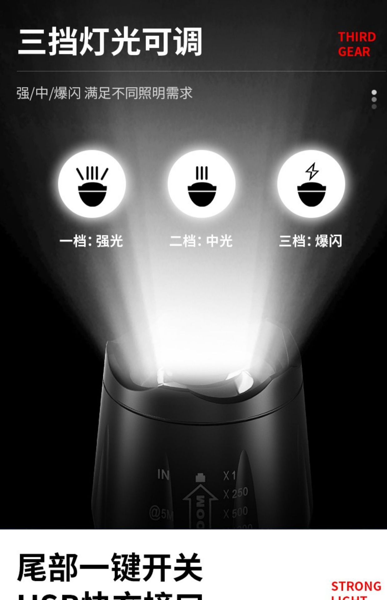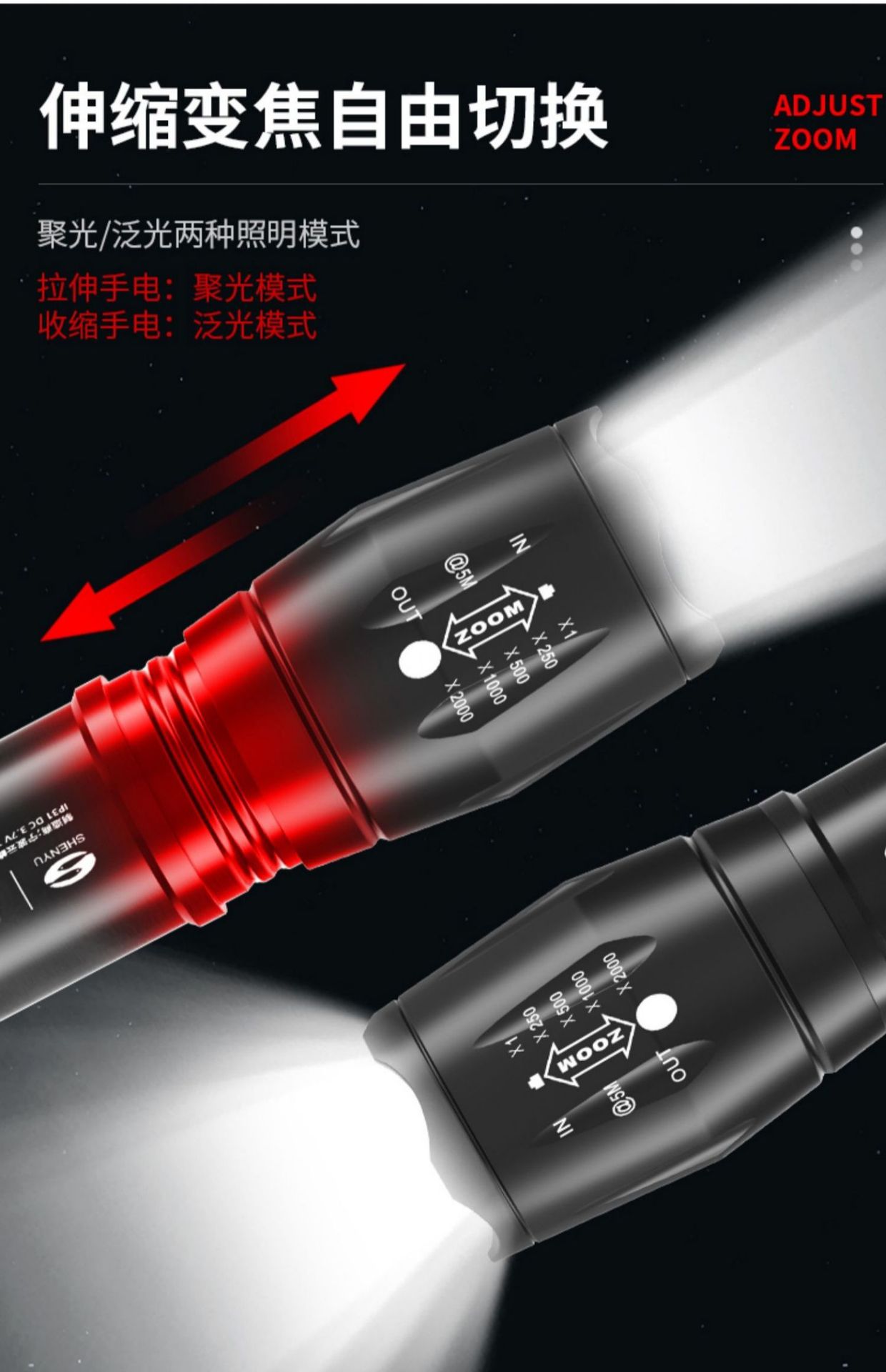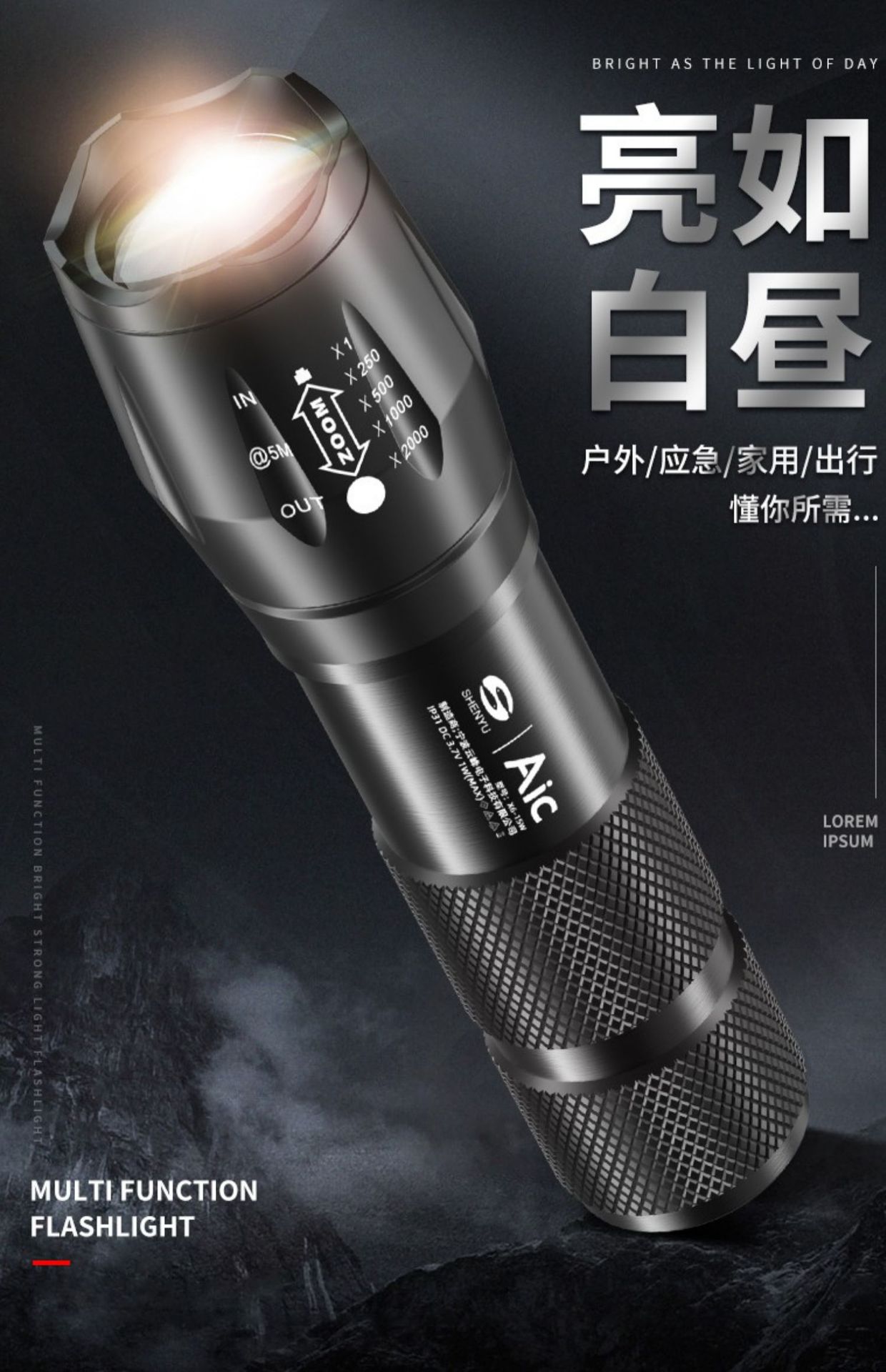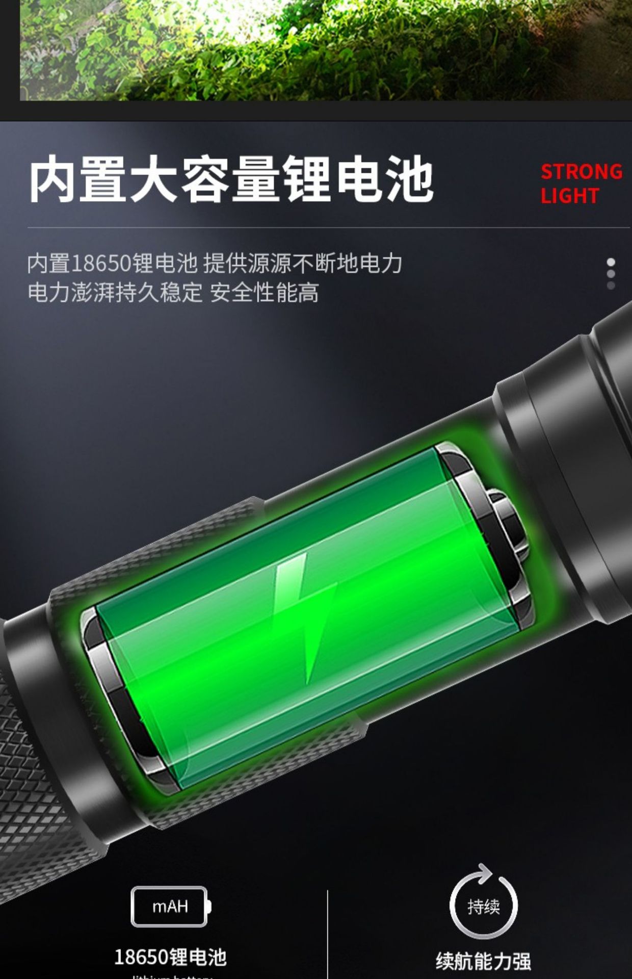 • 500 대 대형 줌 18650 리튬 배터리는 20 시간 더 밝고 강하게 지속됩니다.