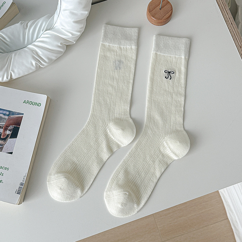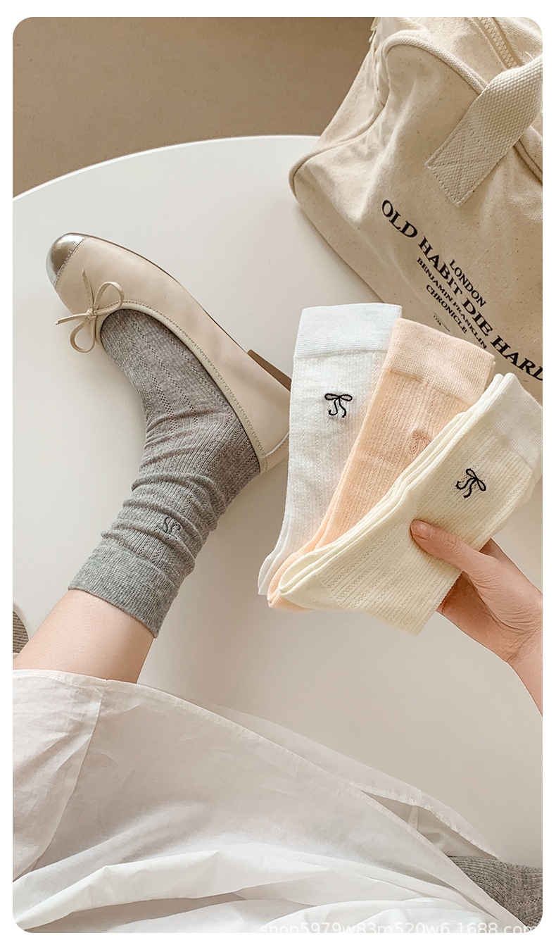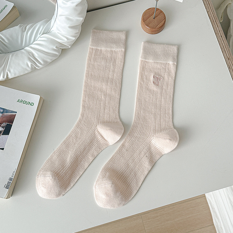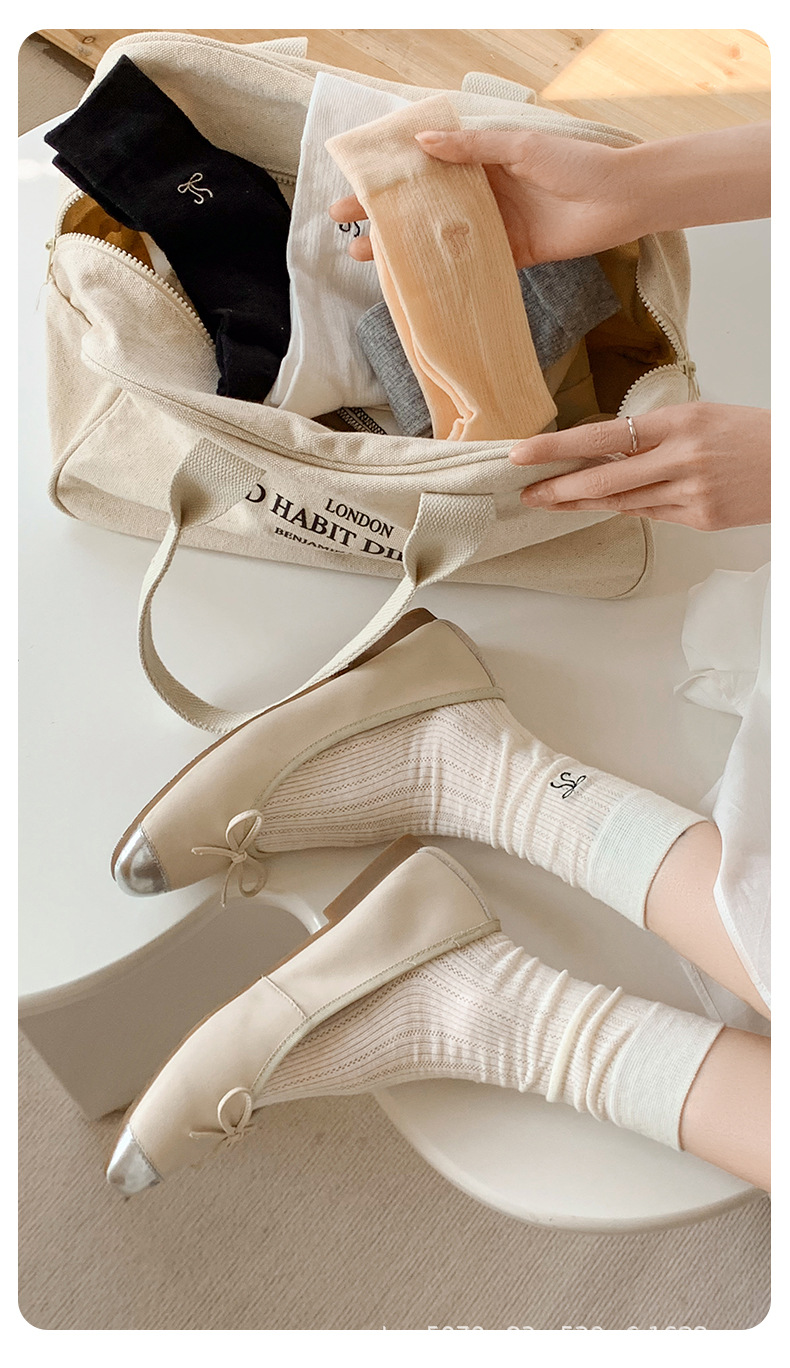 중공 활 양말 봄과 여름 얇은 통기성 중간 튜브 양말 다리 슬리밍 스택 흑백 땀 흡수 면 양말스토어 가기