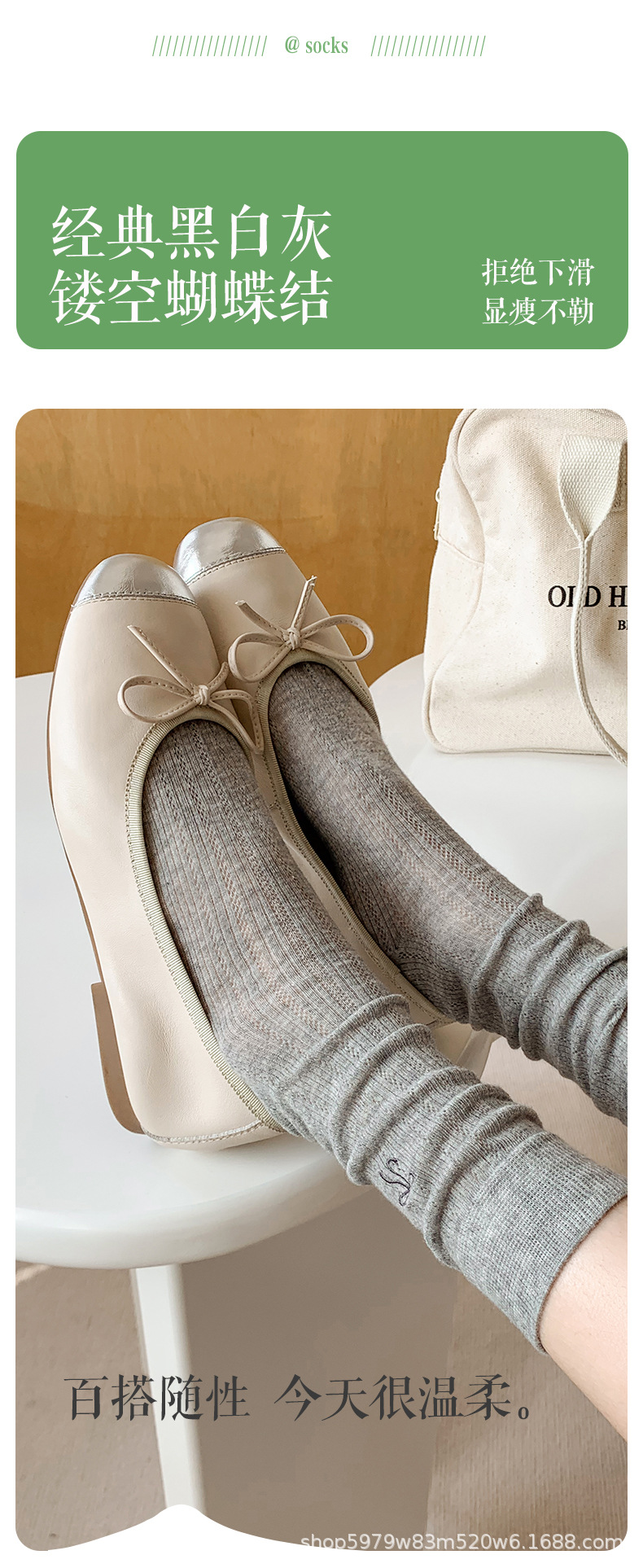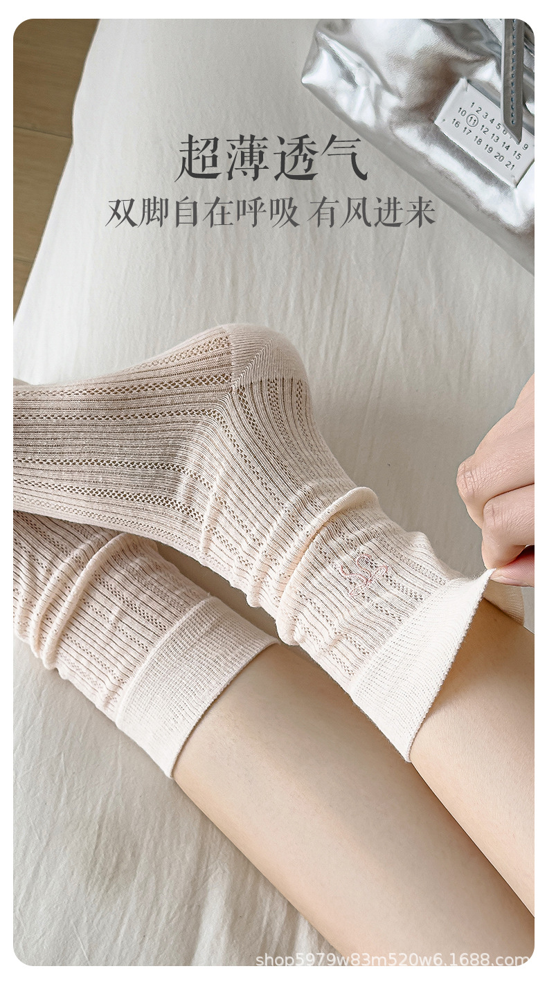 중공 활 양말 봄과 여름 얇은 통기성 중간 튜브 양말 다리 슬리밍 스택 흑백 땀 흡수 면 양말