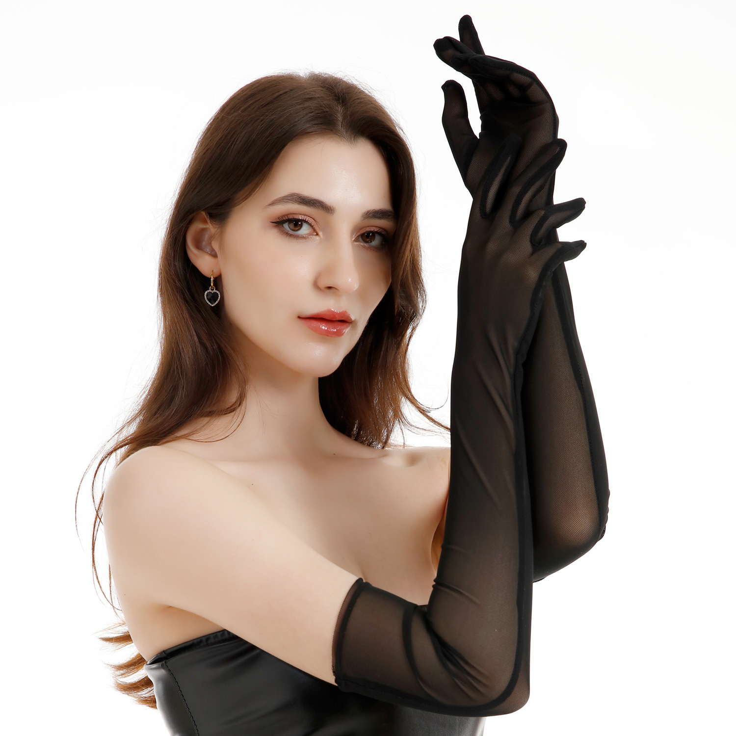 薄款55厘米加长弹力网纱手套