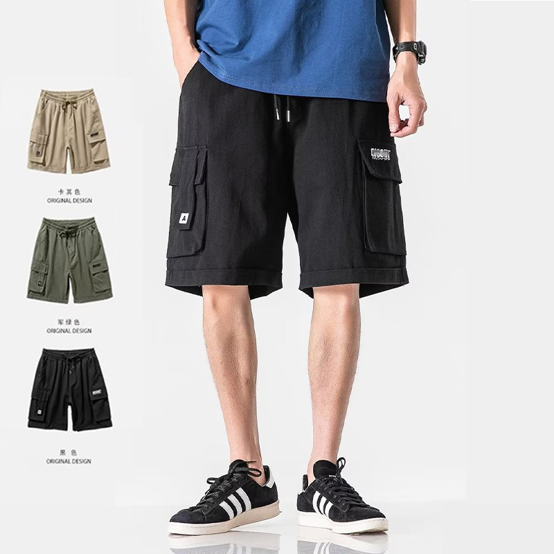 아메리칸 스타일 레트로 반바지 남자 여름 유행 대형 포켓 작업복 5 점 바지 느슨한 올매치 무릎 길이 스트레이트 바지스토어 가기