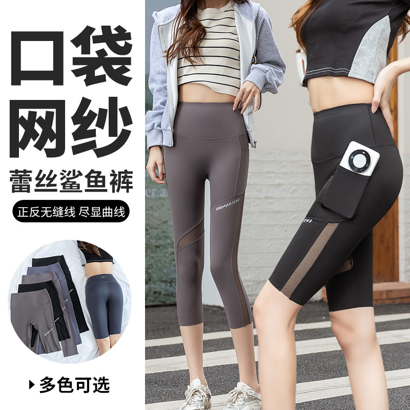 높은 허리 복부 엉덩이 리프팅 피트니스 바지 여성용 메쉬 타이트 바지 러닝 바지 복부 조임 스포츠 반바지 여름 큰 크기스토어 가기