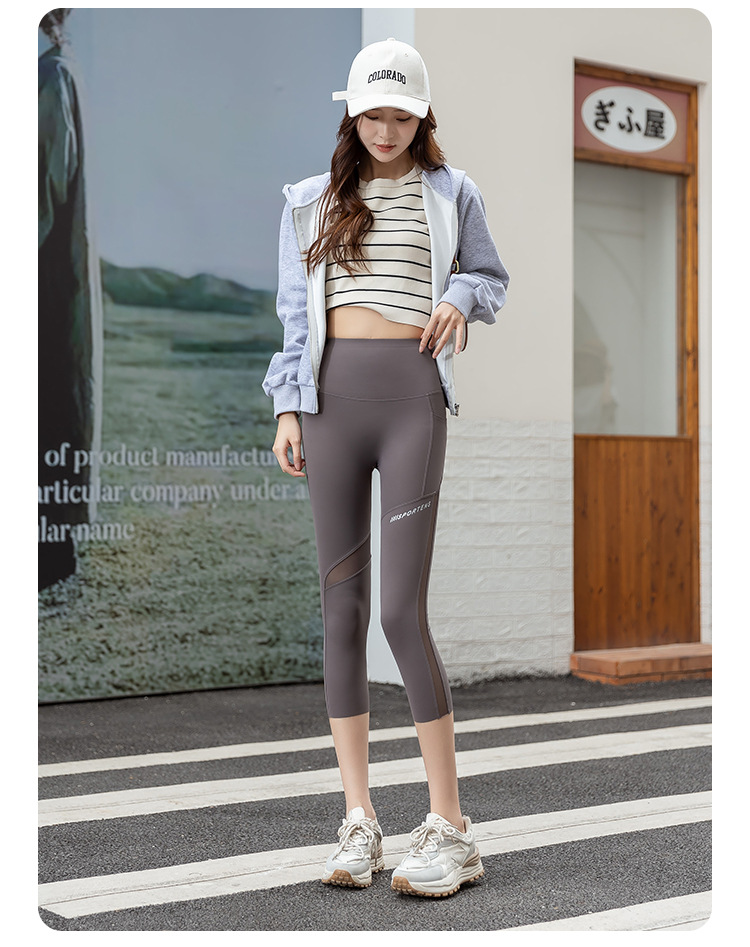 높은 허리 복부 엉덩이 리프팅 피트니스 바지 여성용 메쉬 타이트 바지 러닝 바지 복부 조임 스포츠 반바지 여름 큰 크기