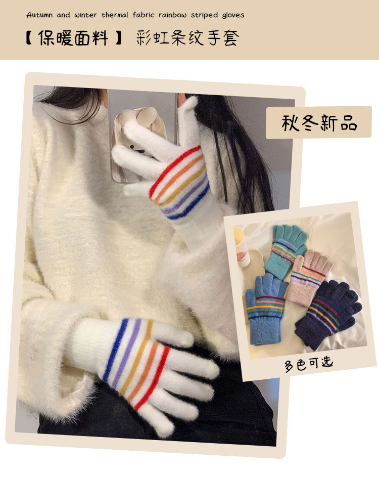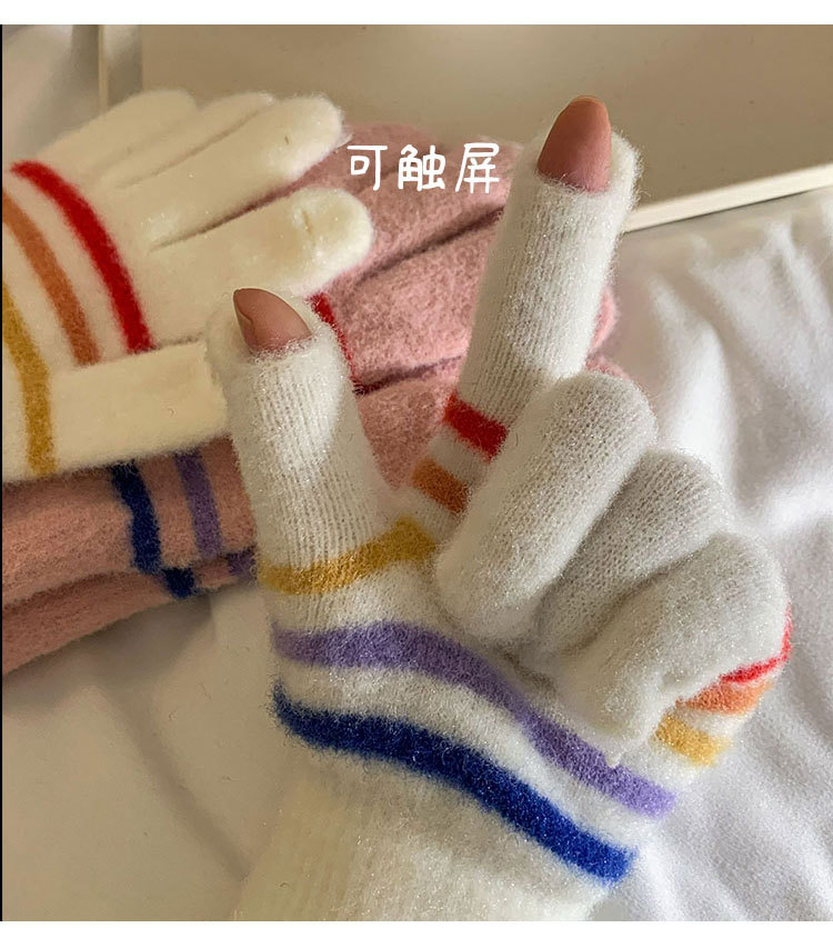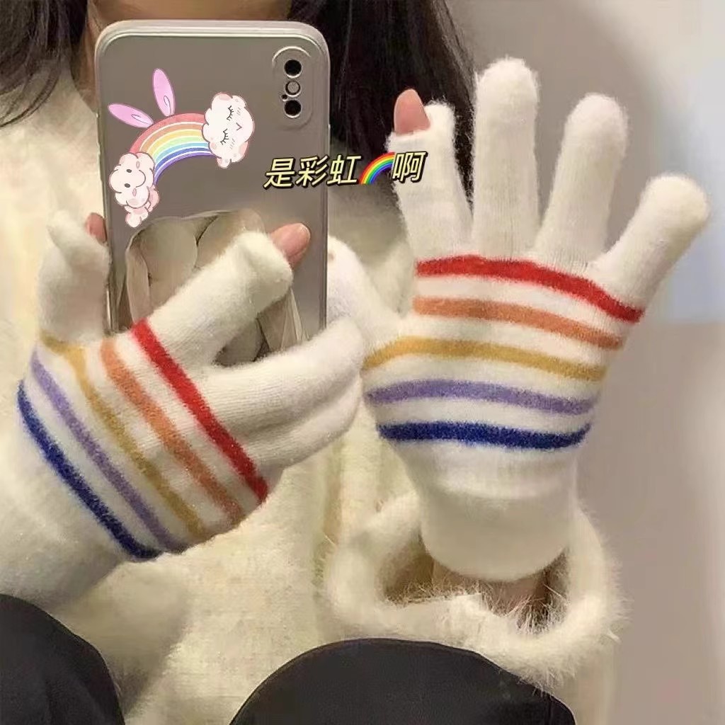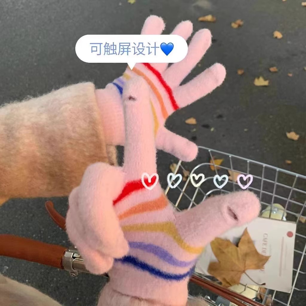 터치 스크린이 있는 여성용 가을 겨울 장갑, 귀여운 무지개 플러스 벨벳, 따뜻한 겨울 방한 사이클링 다섯 손가락 따뜻한 장갑