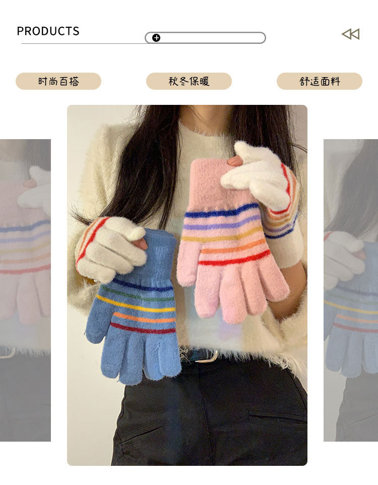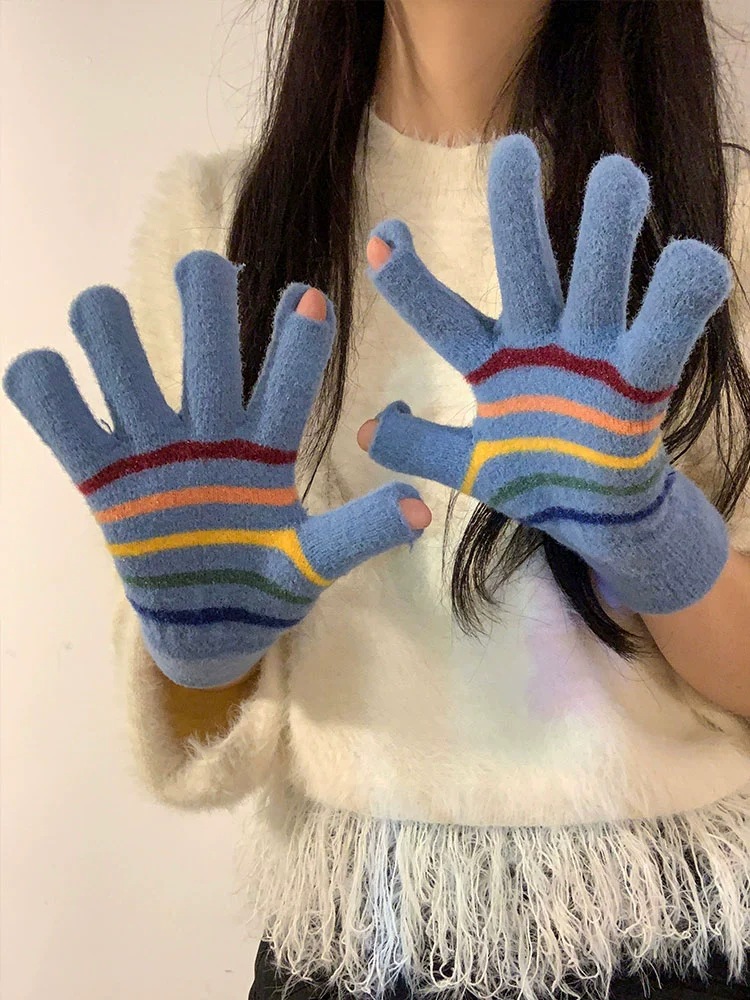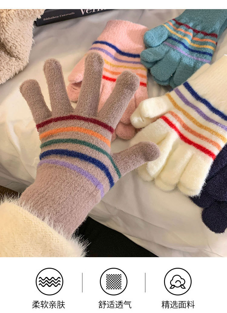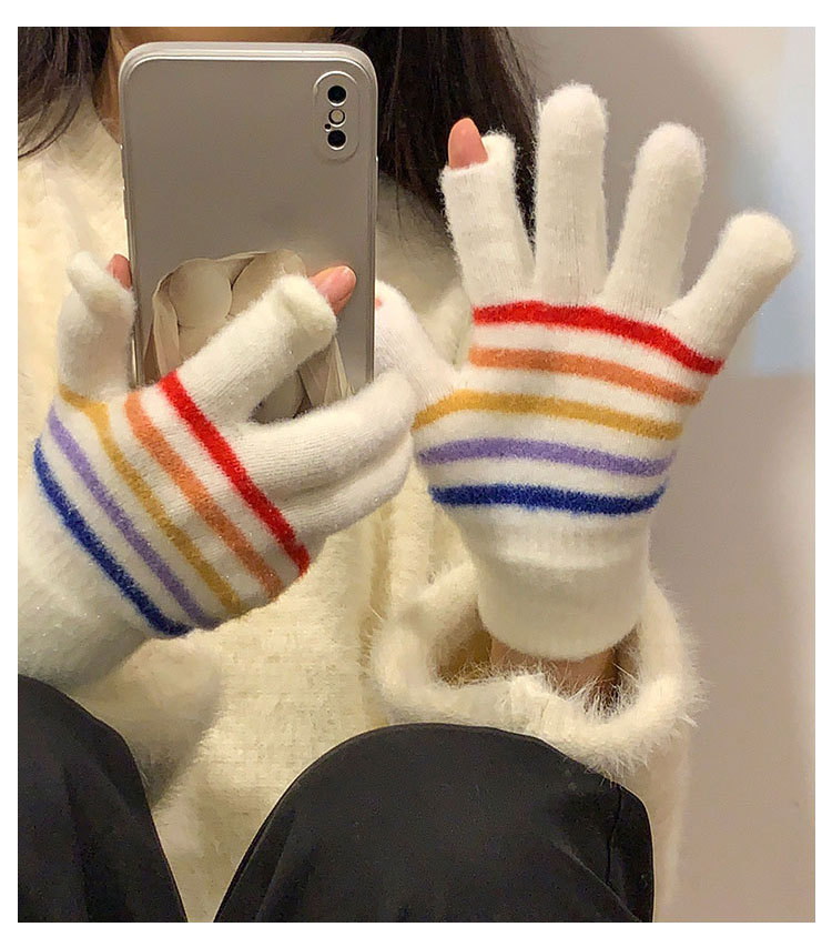 터치 스크린이 있는 여성용 가을 겨울 장갑, 귀여운 무지개 플러스 벨벳, 따뜻한 겨울 방한 사이클링 다섯 손가락 따뜻한 장갑