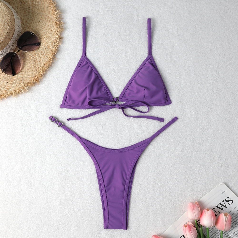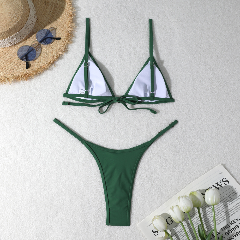 2024 새로운 대외 무역 분할 비키니 국경 섹시한 백리스 솔리드 컬러 유럽과 미국 비치 비키니 수영복스토어 가기