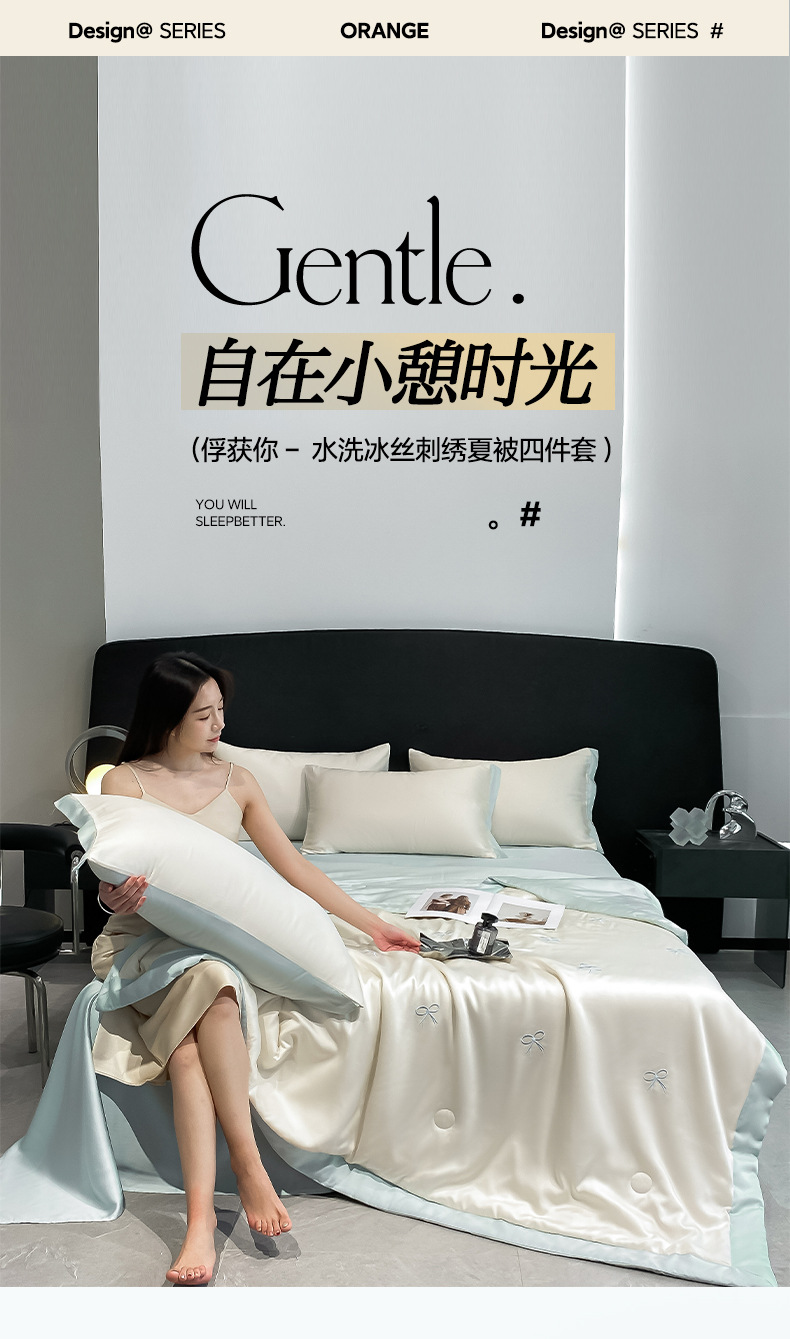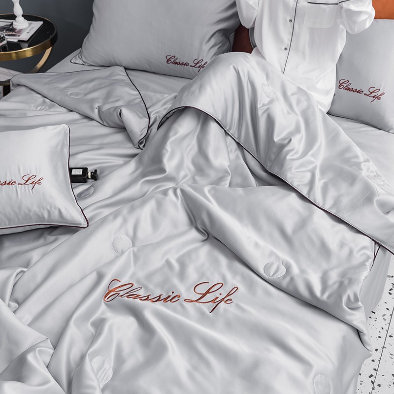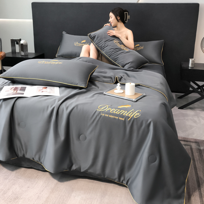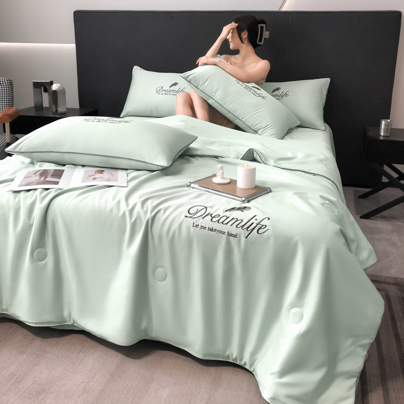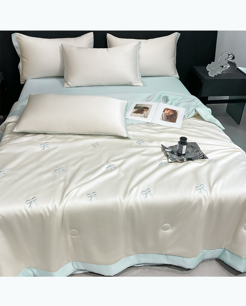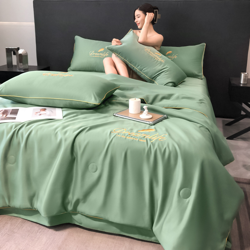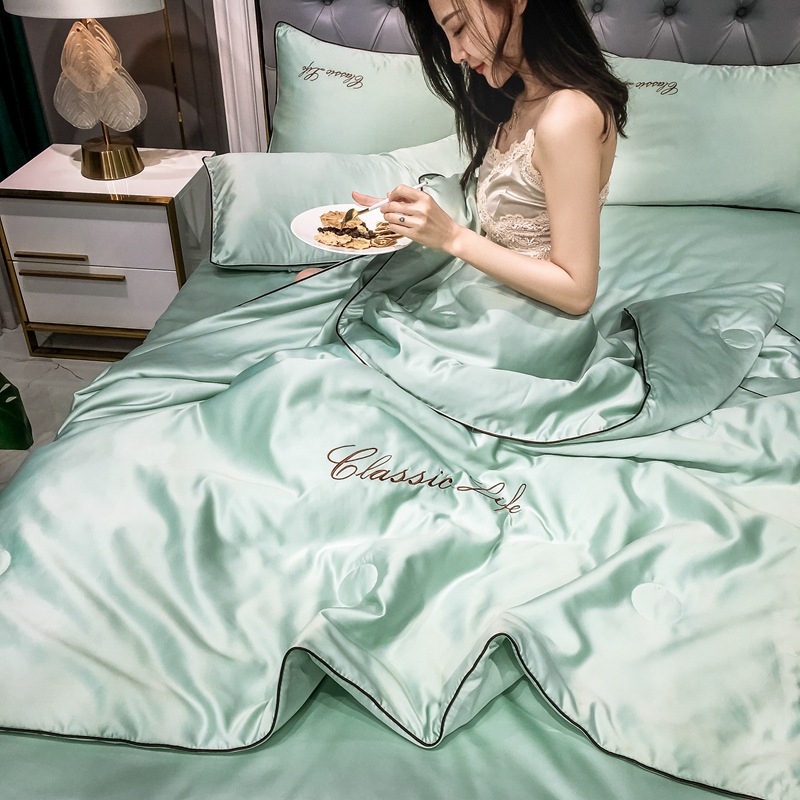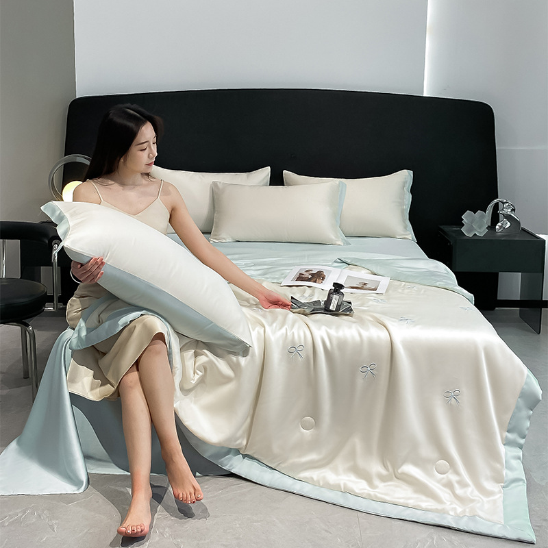 워셔블 실크 여름 이불 4종 세트, 텐셀 여름 시원한 이불, 세탁기 사용 가능 에어컨 이불, 싱글/더블 이불심, 얇은 이불, 얇은 모델