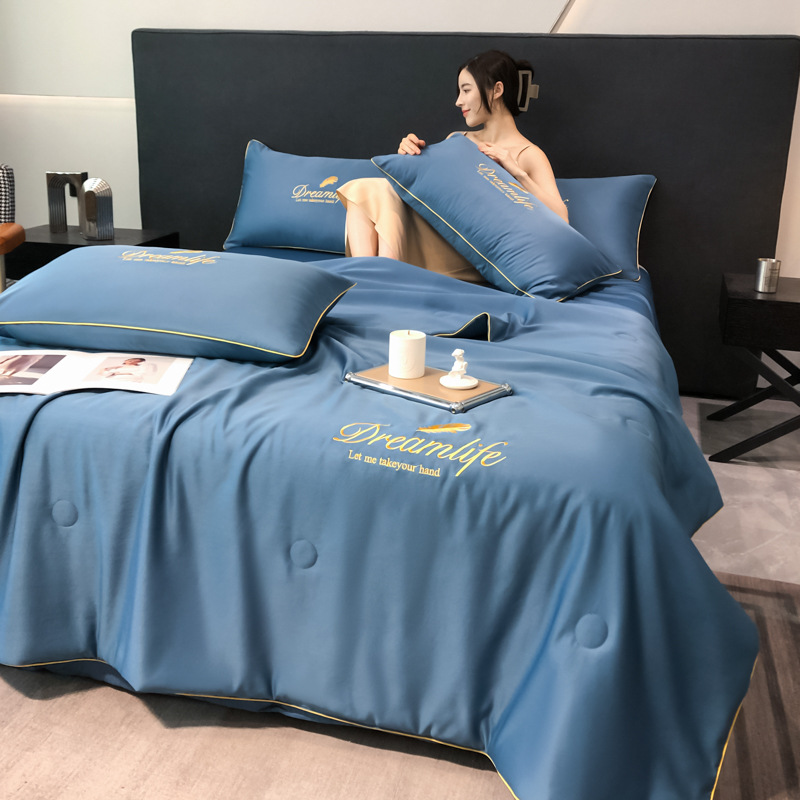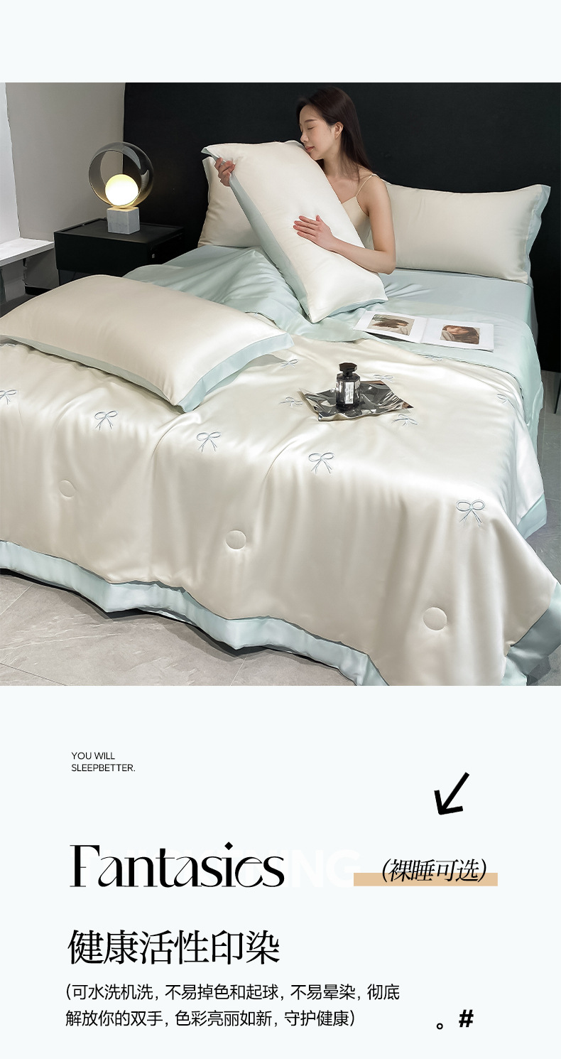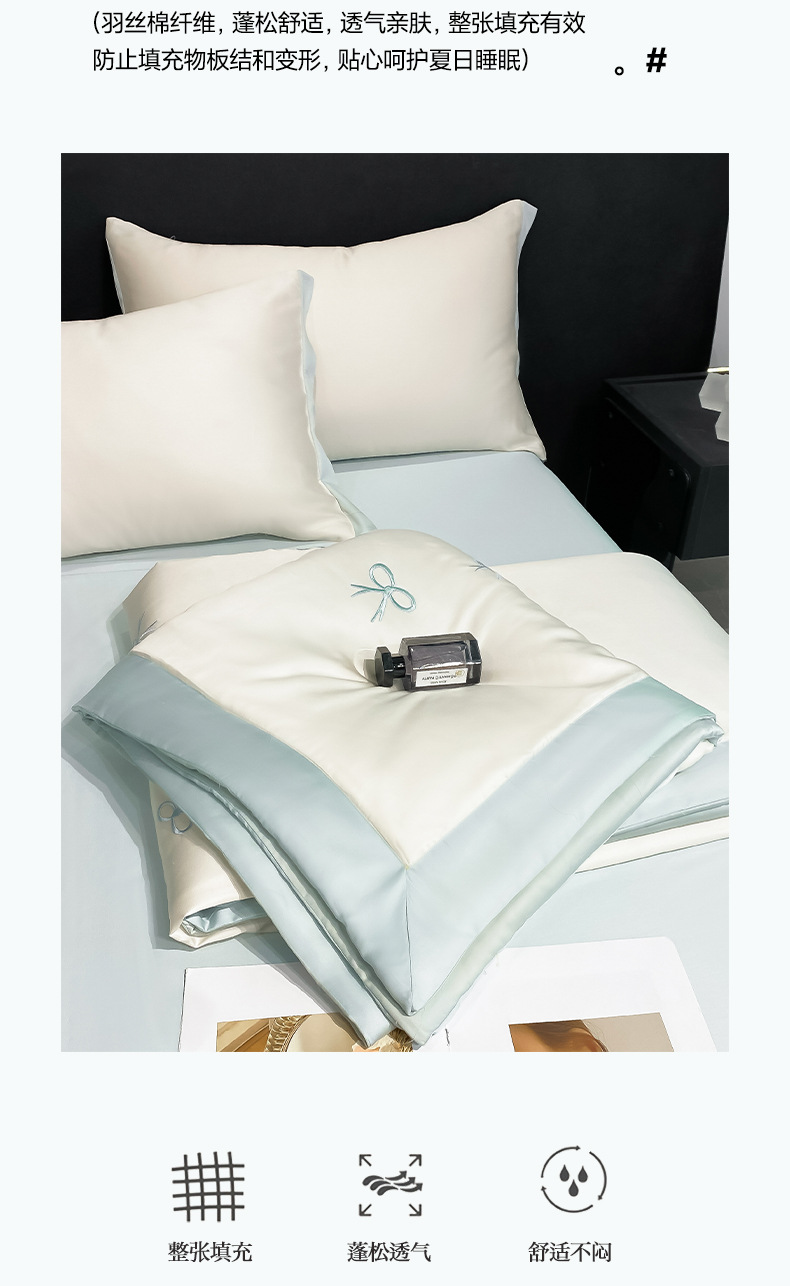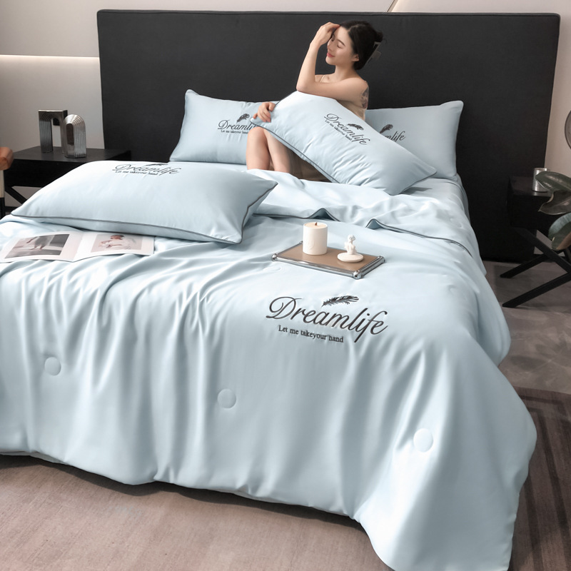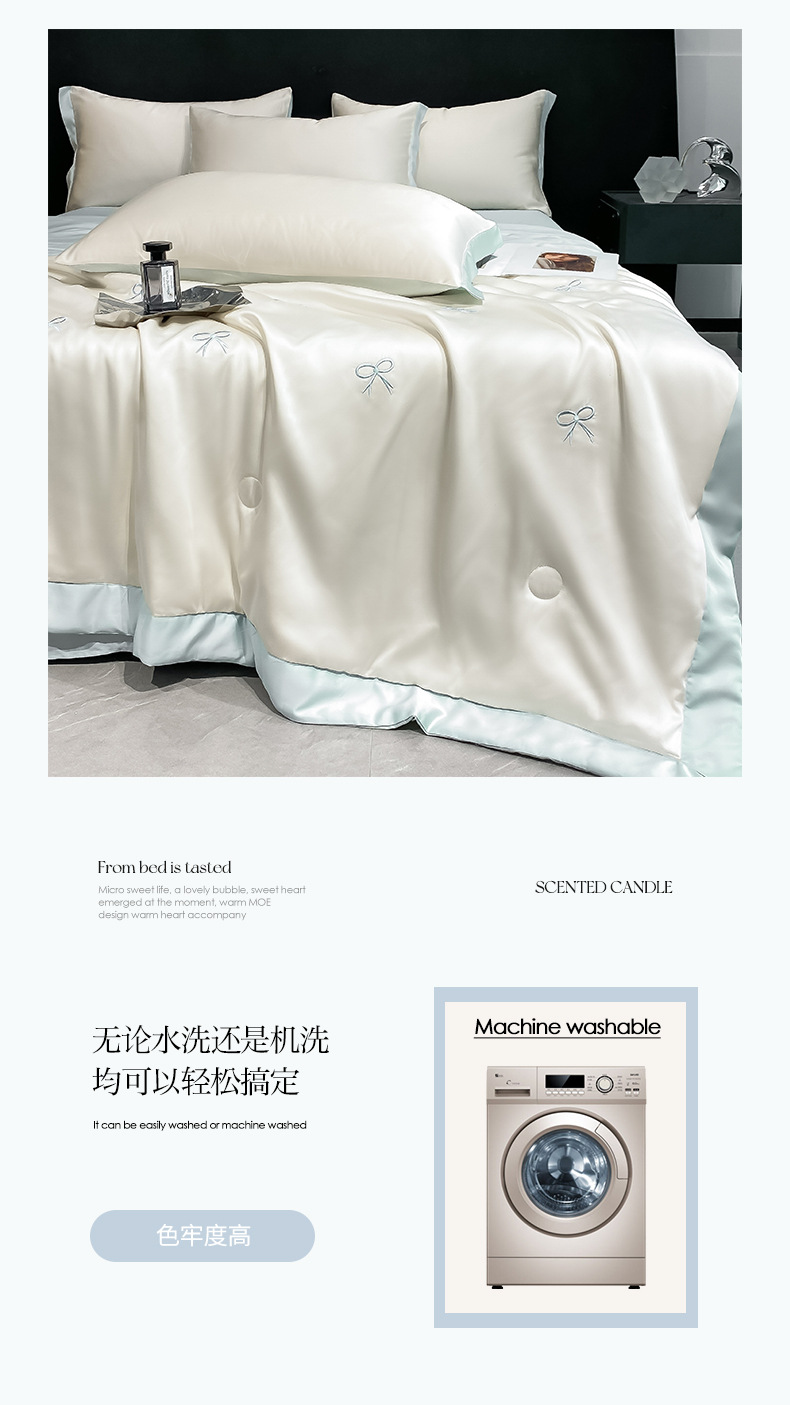 워셔블 실크 여름 이불 4종 세트, 텐셀 여름 시원한 이불, 세탁기 사용 가능 에어컨 이불, 싱글/더블 이불심, 얇은 이불, 얇은 모델스토어 가기