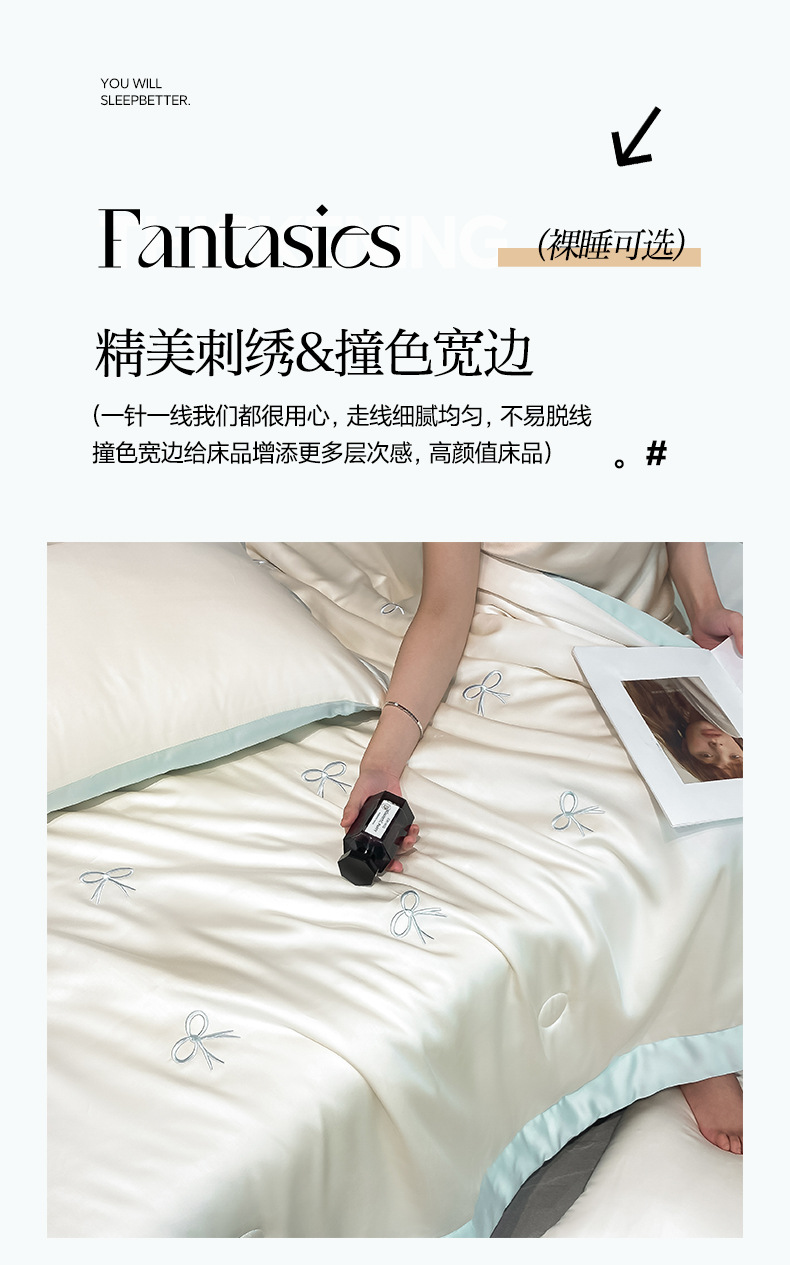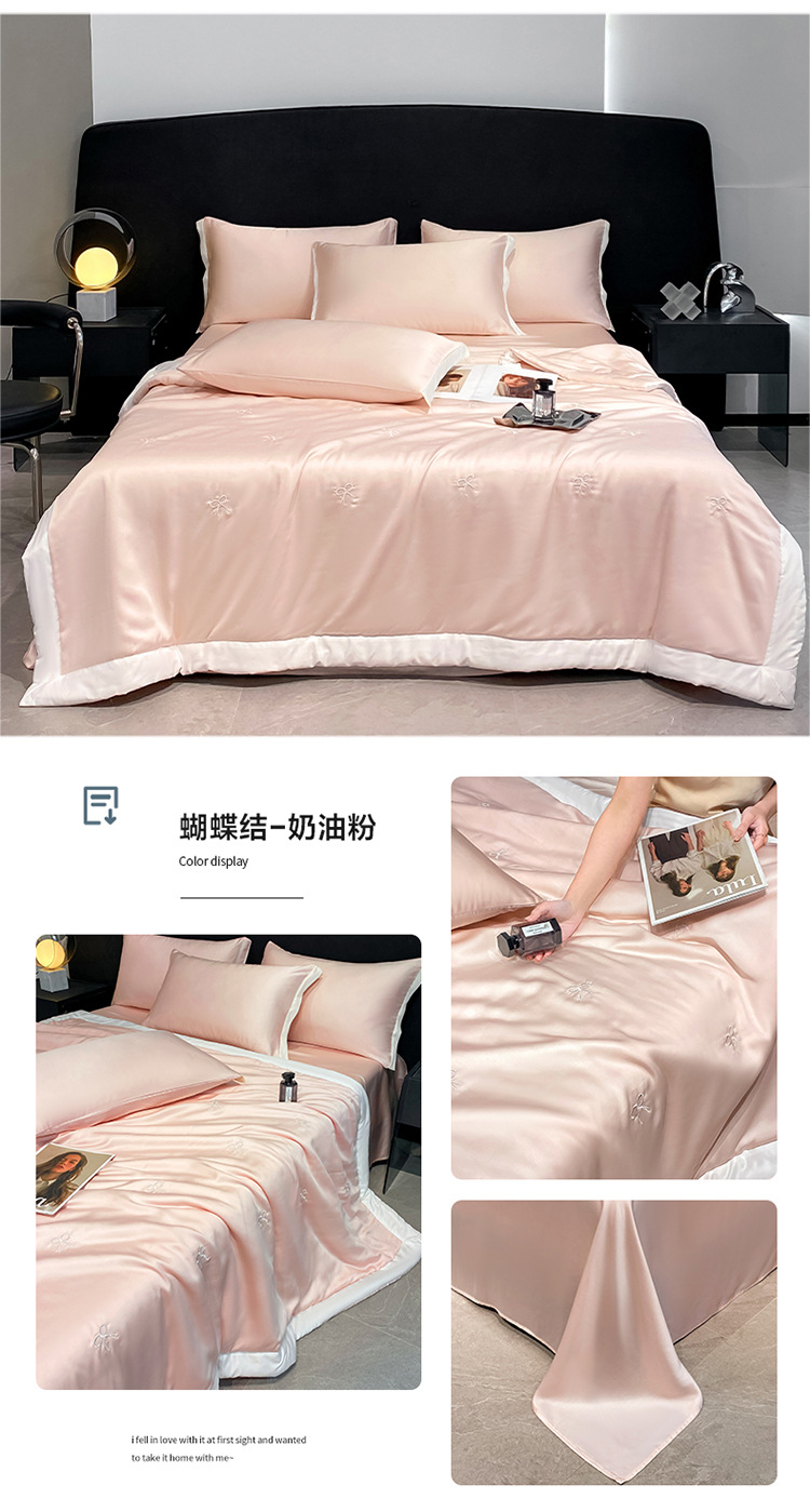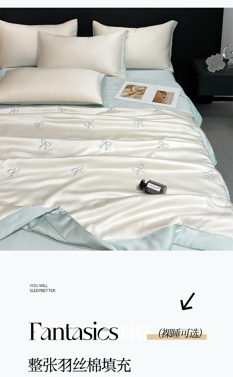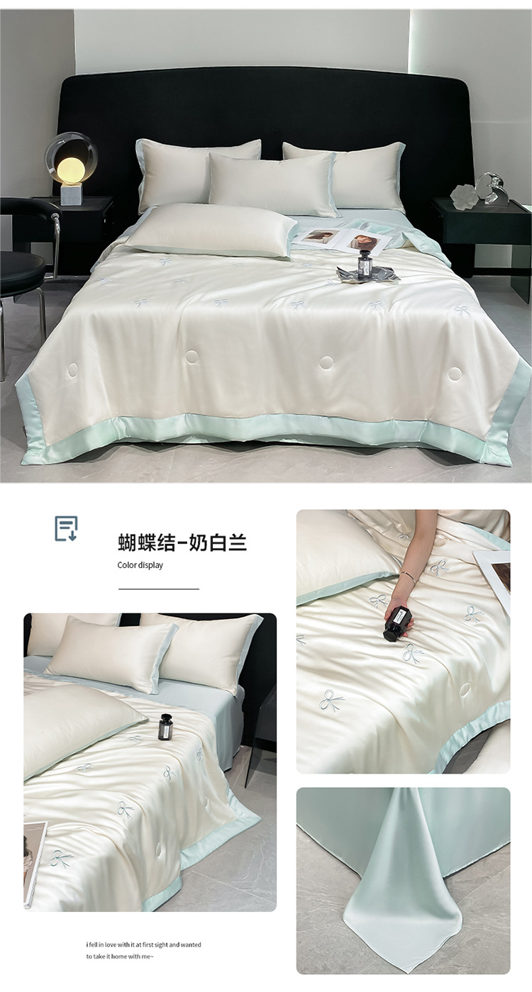 워셔블 실크 여름 이불 4종 세트, 텐셀 여름 시원한 이불, 세탁기 사용 가능 에어컨 이불, 싱글/더블 이불심, 얇은 이불, 얇은 모델스토어 가기