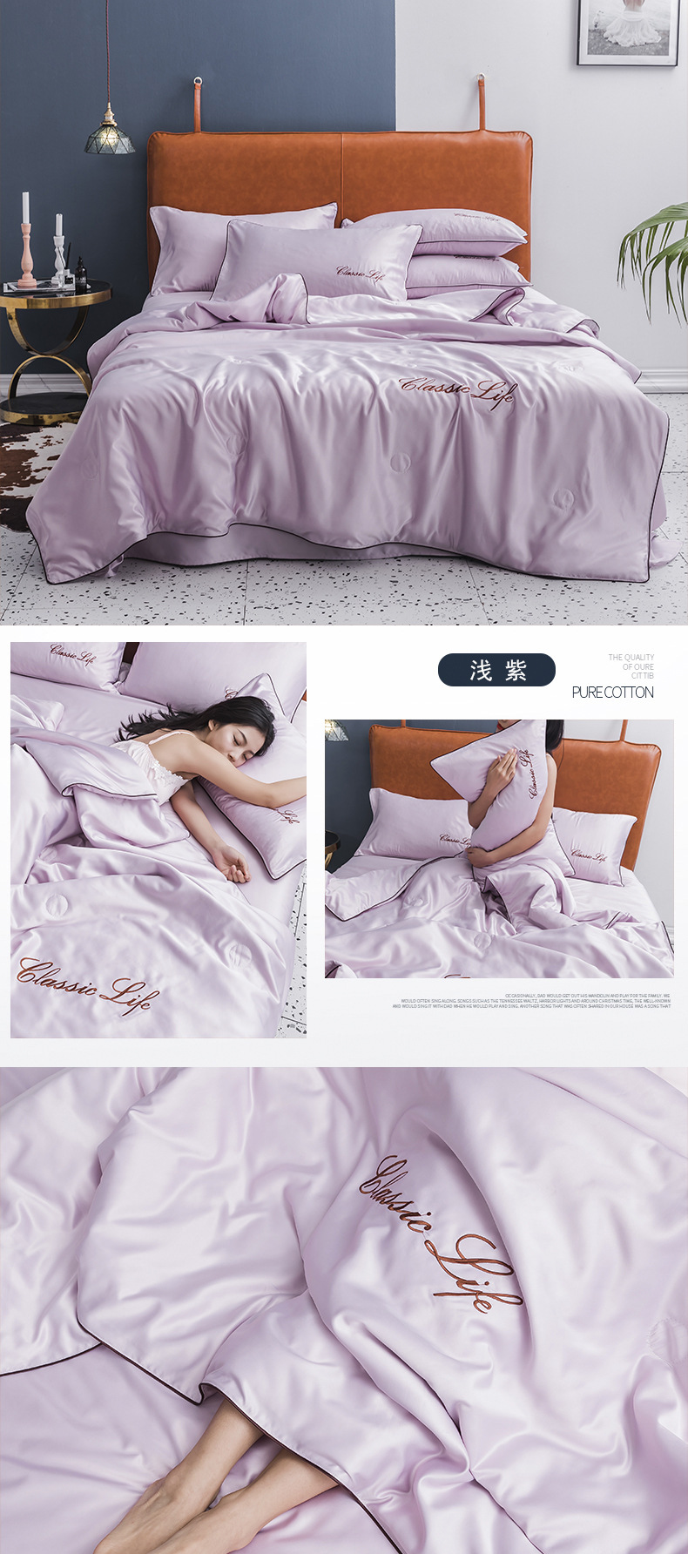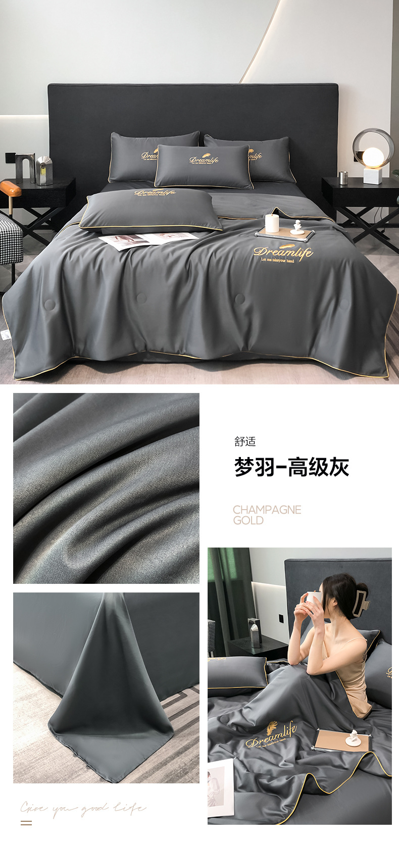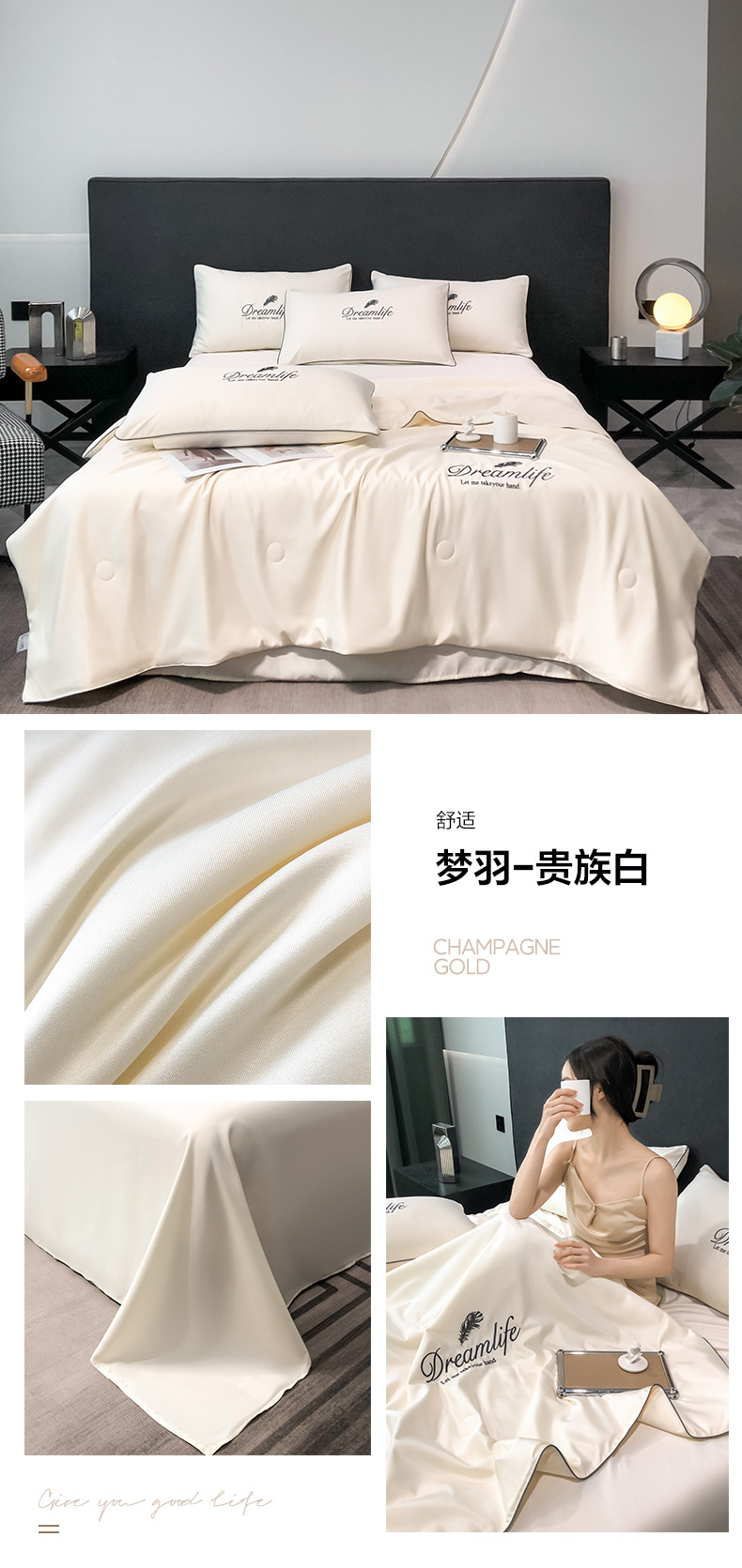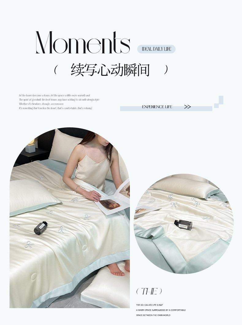 워셔블 실크 여름 이불 4종 세트, 텐셀 여름 시원한 이불, 세탁기 사용 가능 에어컨 이불, 싱글/더블 이불심, 얇은 이불, 얇은 모델스토어 가기