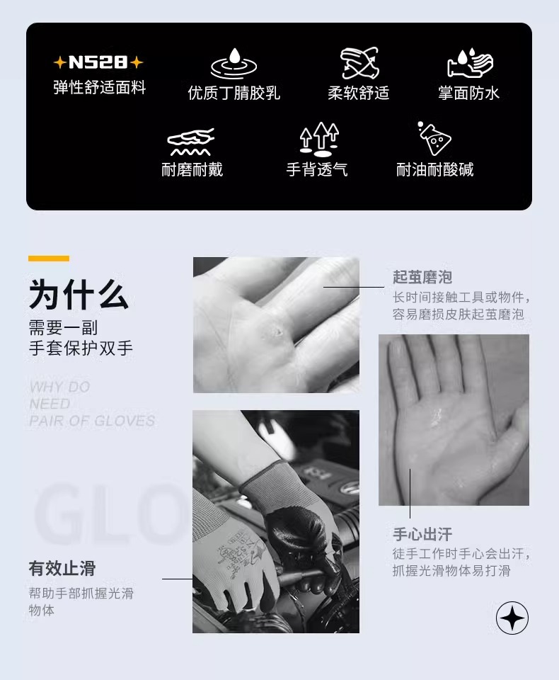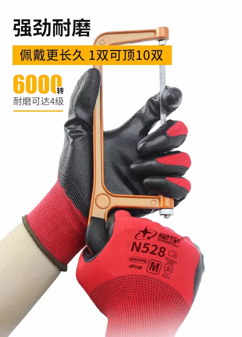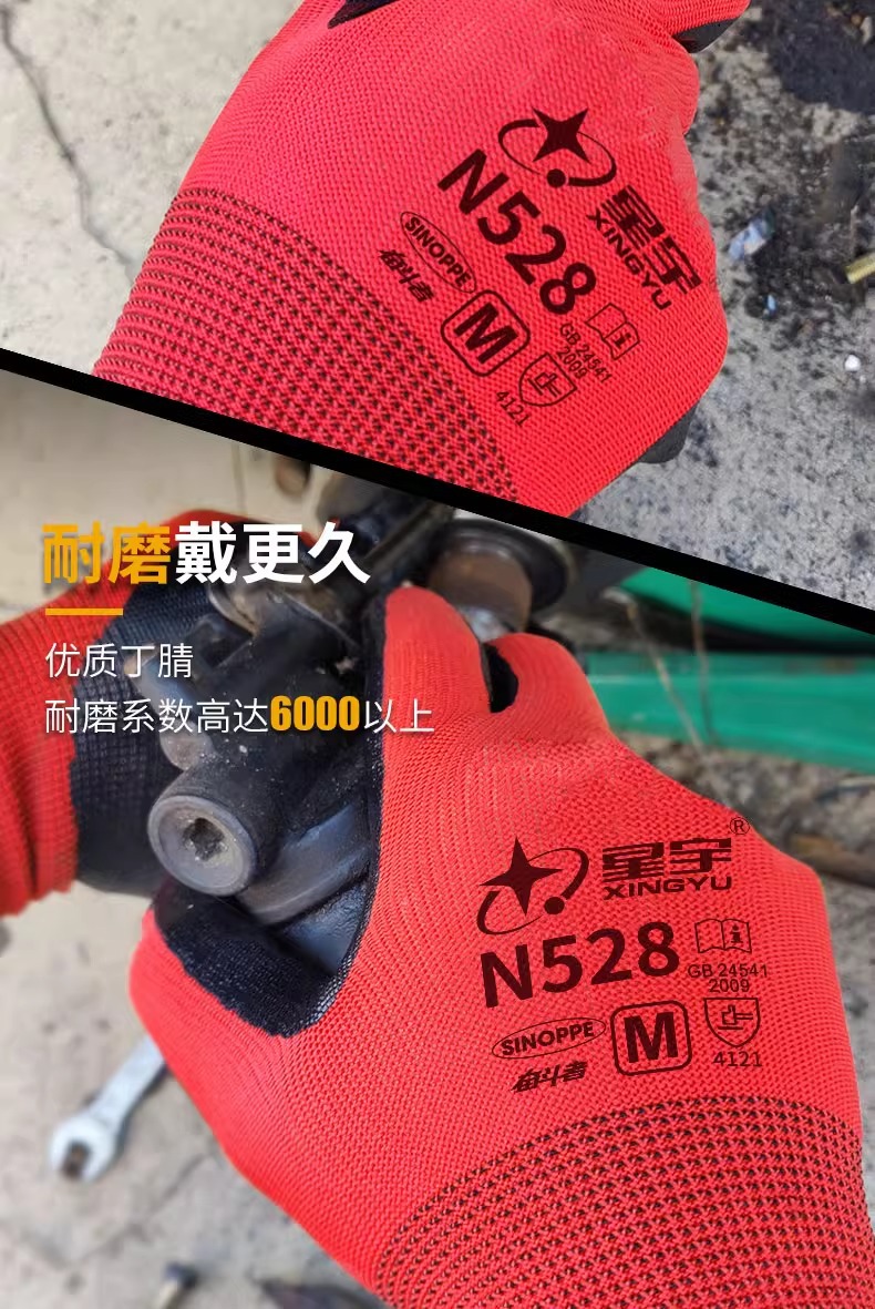 Xingyu 장갑 내마모성 미끄럼 방지 통기성 N528 니트릴 고무 내유성 산 및 현장 작업을위한 알칼리성 노동 보호 장갑