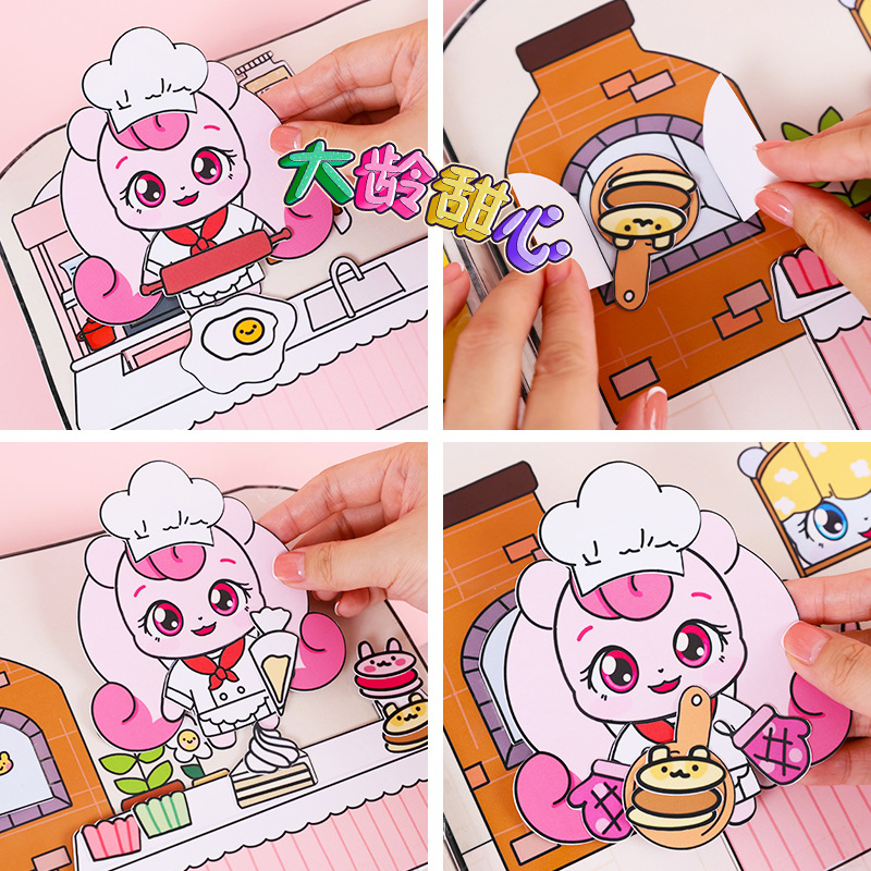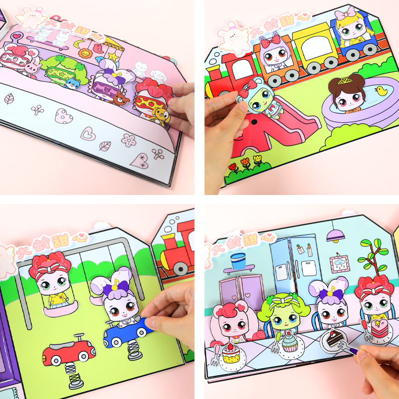 Diy 수제 창조적 인 장난감 멀티 장면 옵션 어린이는 반복적으로 멋진 사랑스러운 공주 집 변경 조용한 책을 연주합니다.스토어 가기