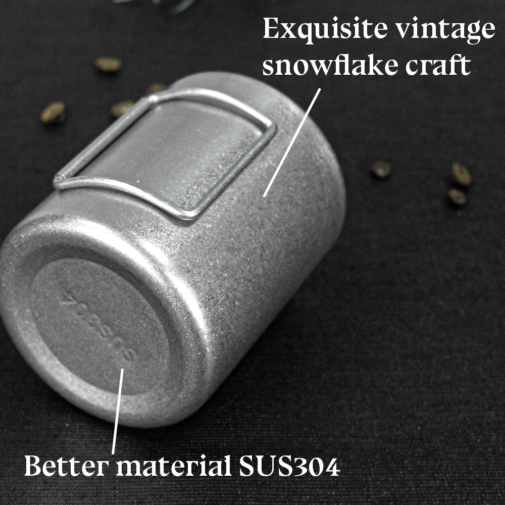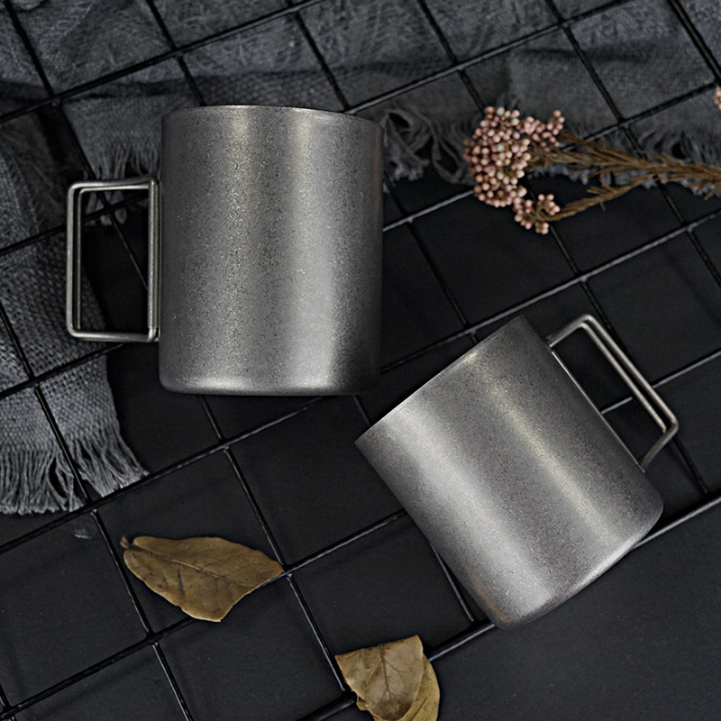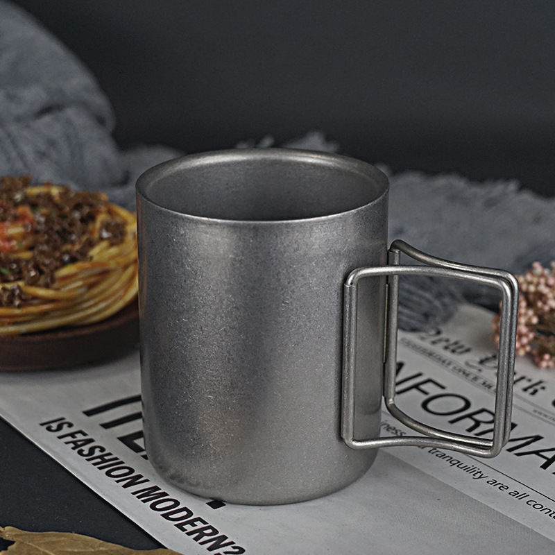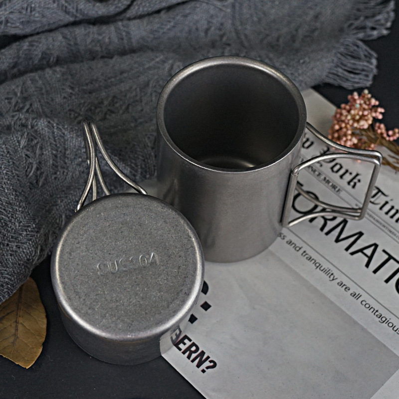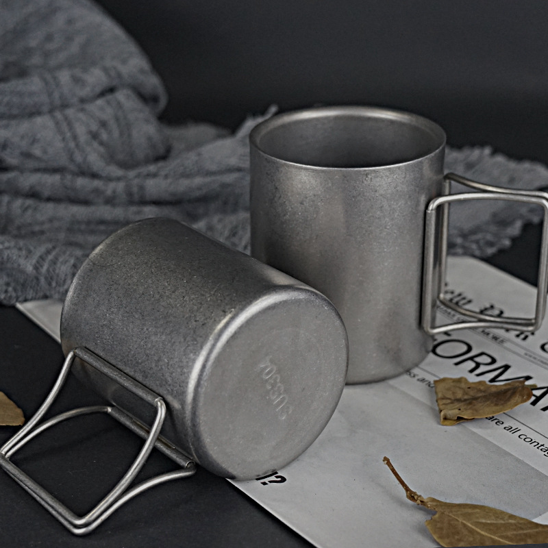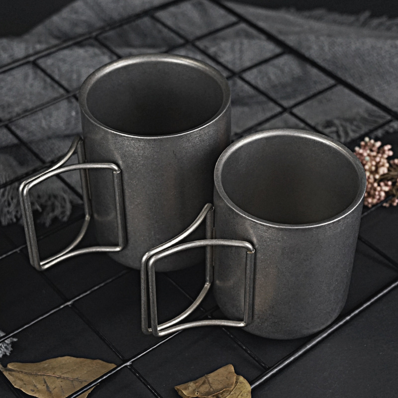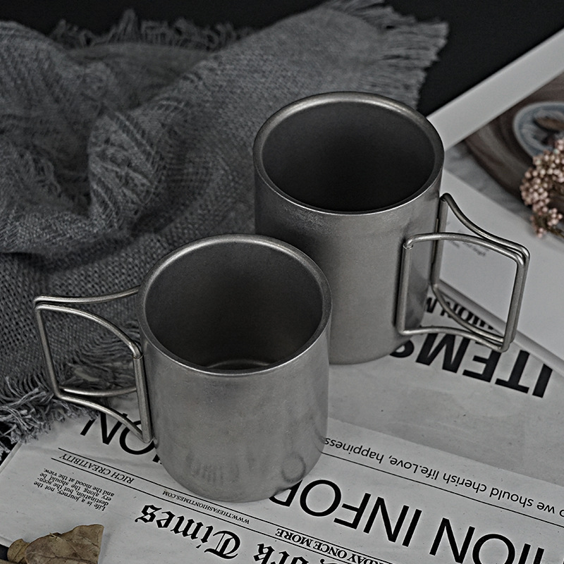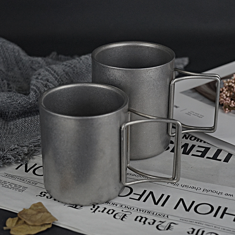 레트로 304 스테인레스 스틸 이중층 접이식 야외 이중층 컵 휴대용 로고 보온병 컵 핸들 편리한 물컵