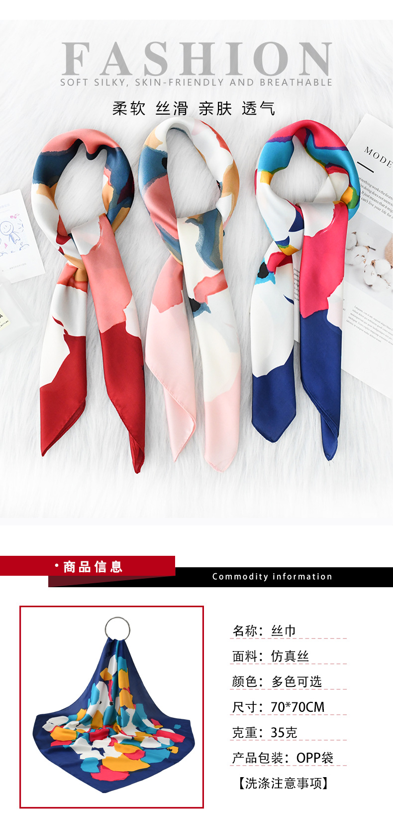 시뮬레이션 스카프 여성 70cm 전문 스튜어디스 작은 스카프 웨이브 포인트 컬러 매칭 다기능 새로운 실크 새틴 스퀘어 스카프 도매스토어 가기