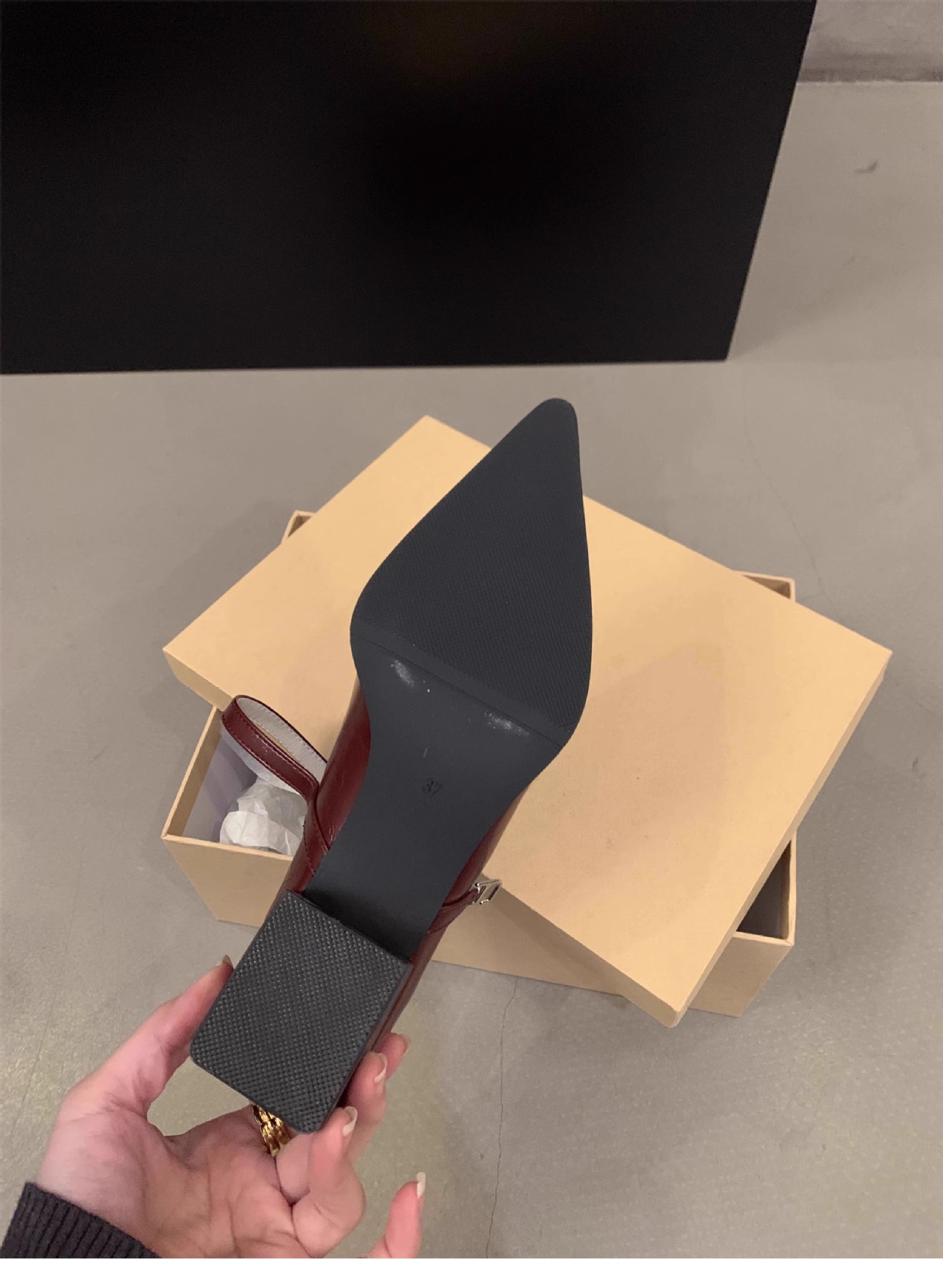하이힐 여성용 두꺼운 힐 미드 힐 포인팅 신발 2024 새 봄 여성 가죽 신발 버클 메리 제인 심야 신발스토어 가기