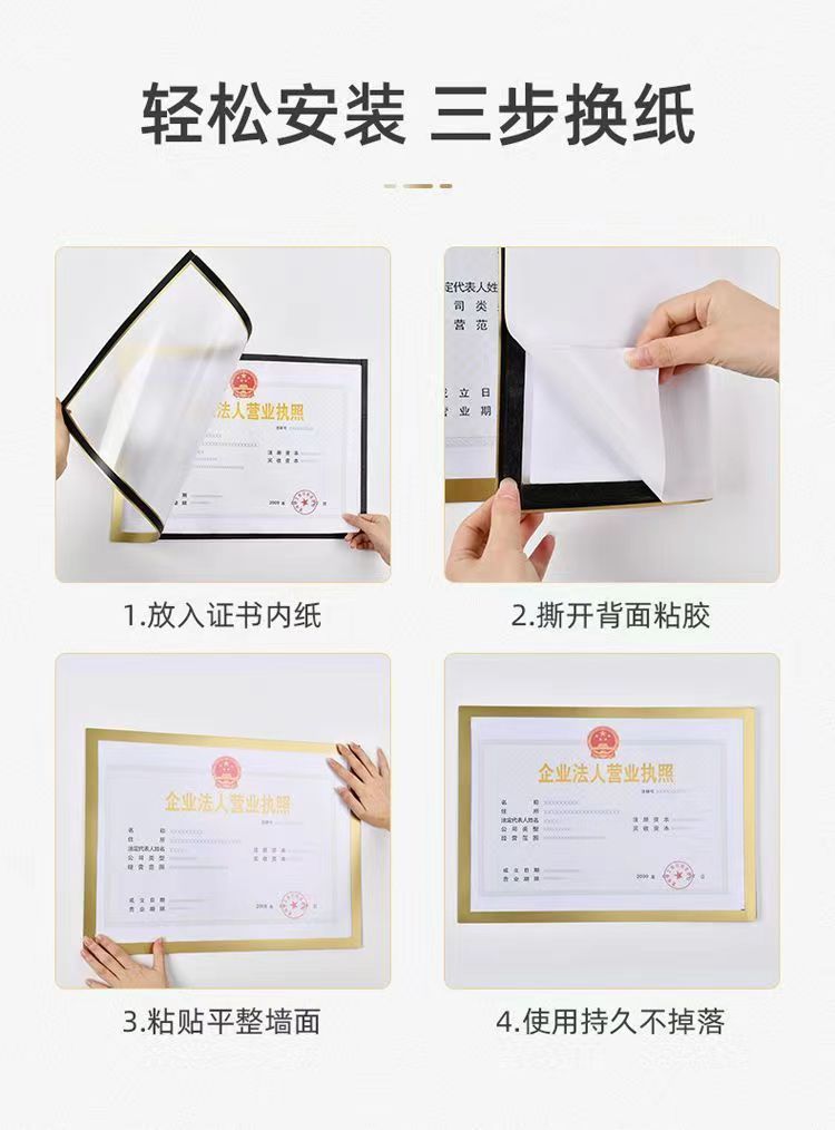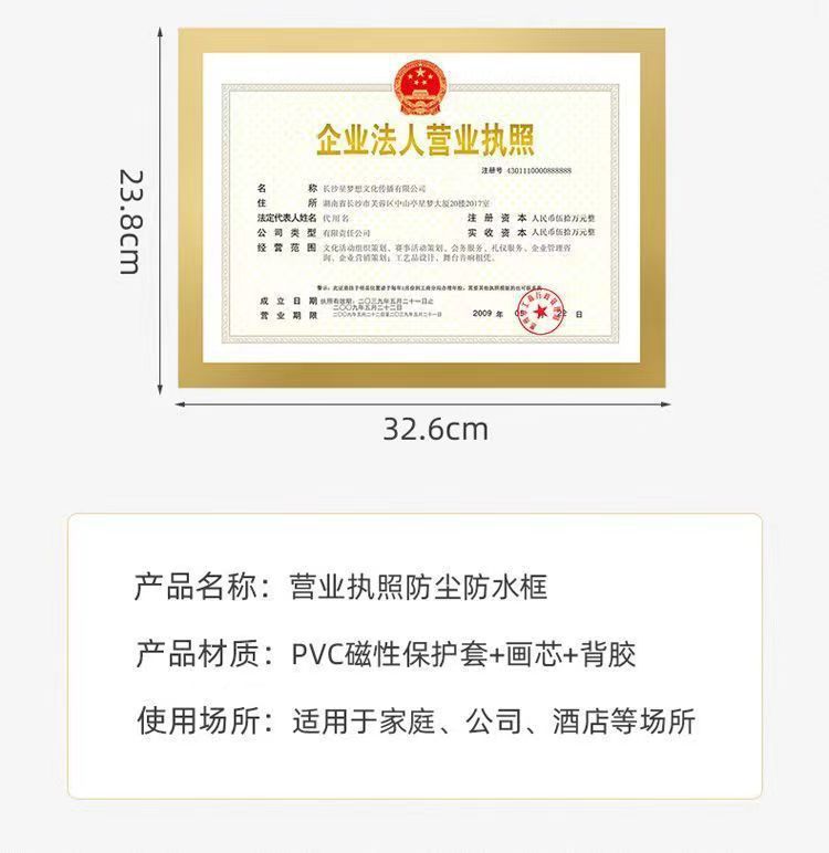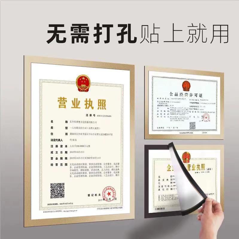 비즈니스 라이센스 프레임 원래 벽걸이 사진 프레임 보호 커버 펀치 무료 사진 상 프레임 A3a4 건강 라이센스스토어 가기