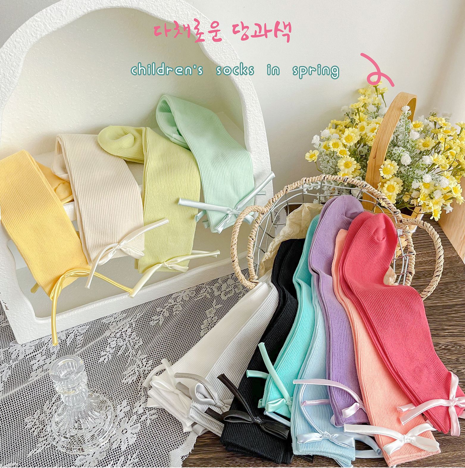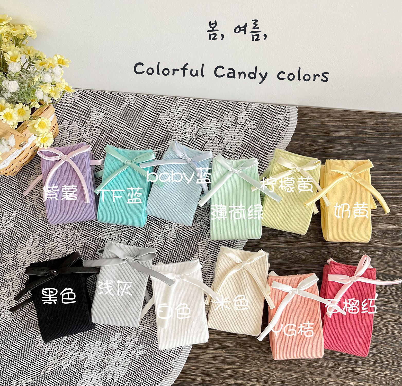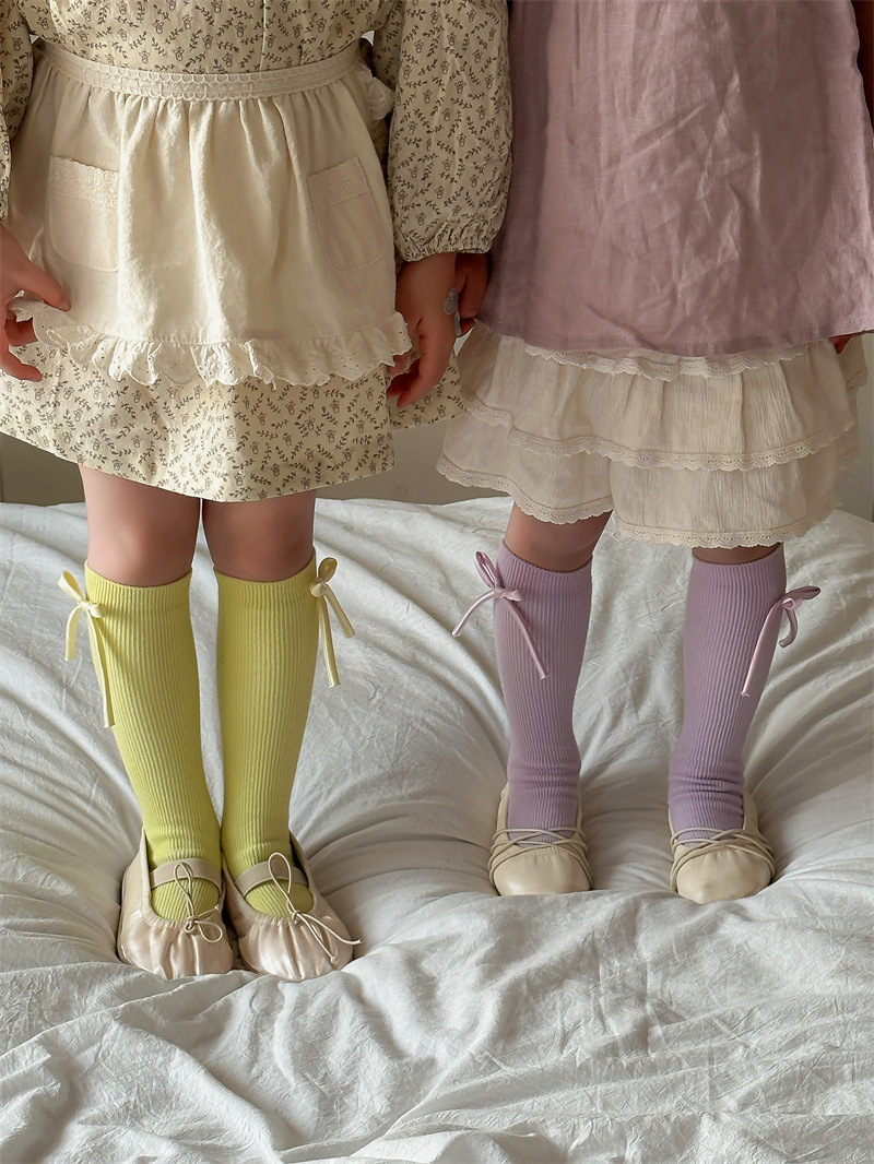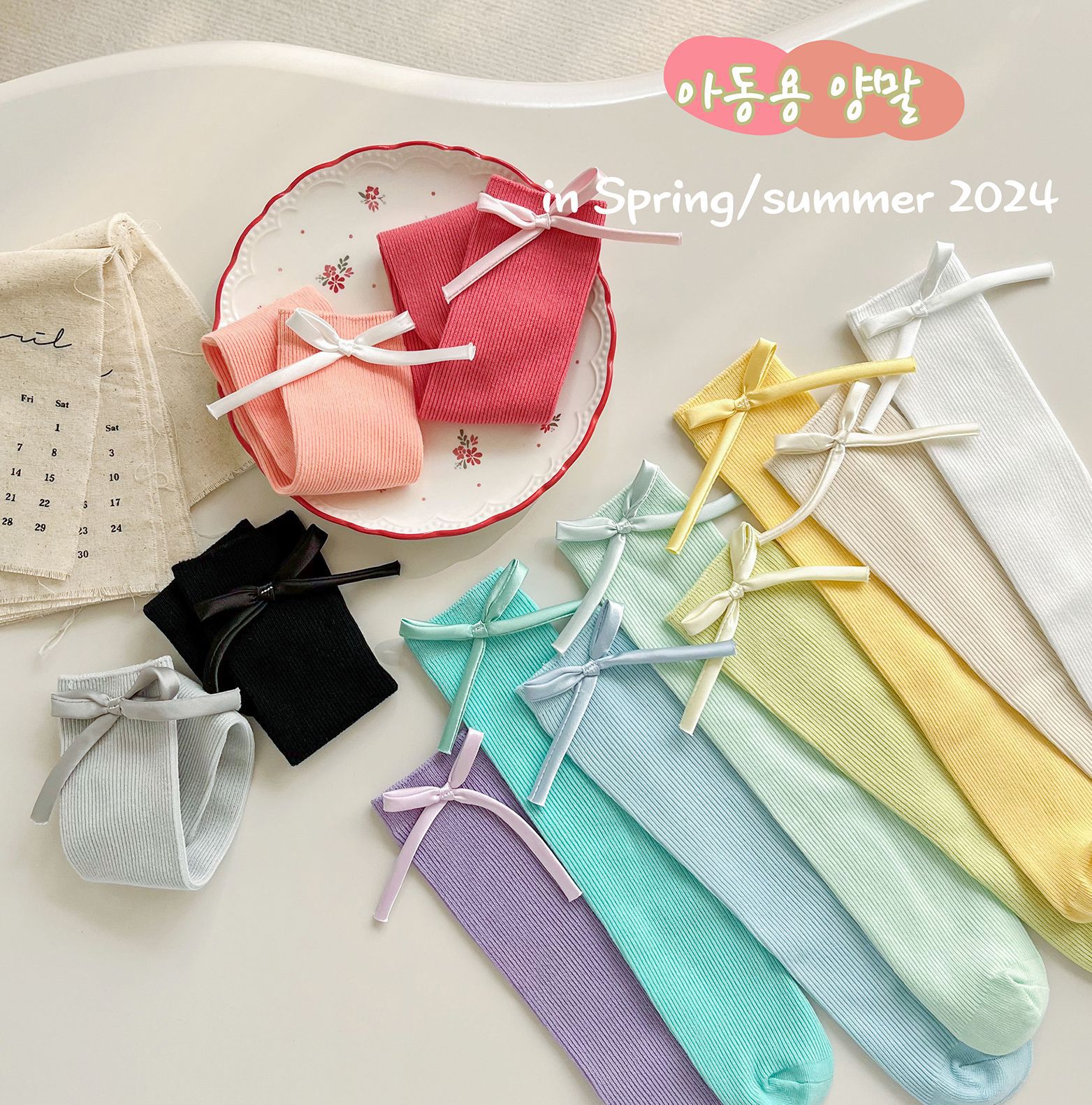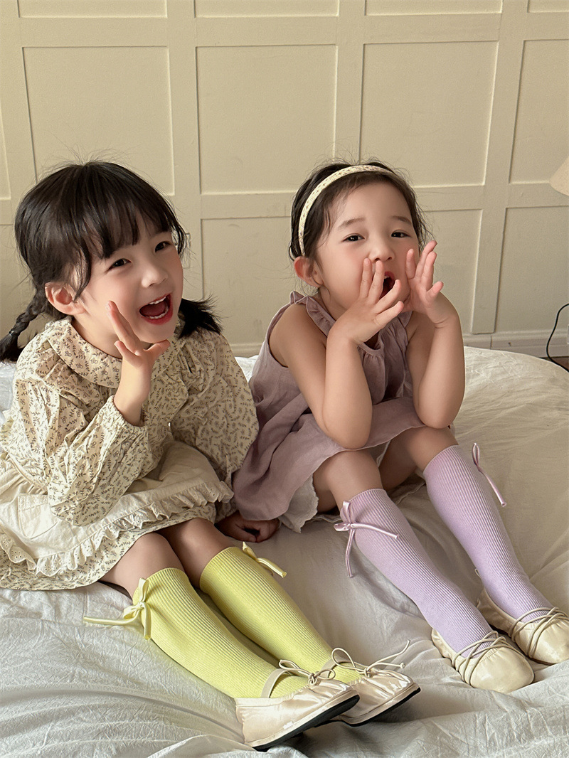 2024 년 어린이 양말 봄과 여름 활 한국 여자 중간 튜브 양말 면 스트레이트 양말 밝은 색상 스택 양말