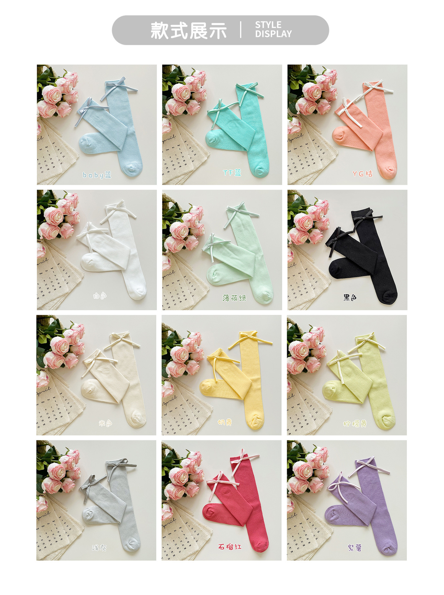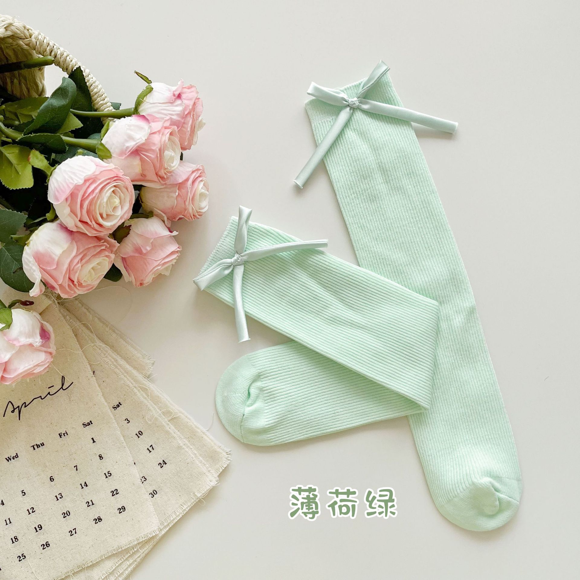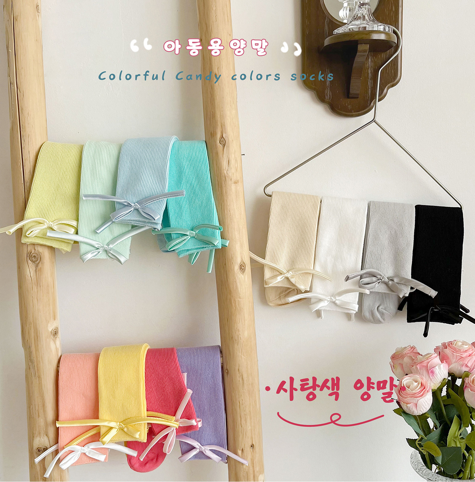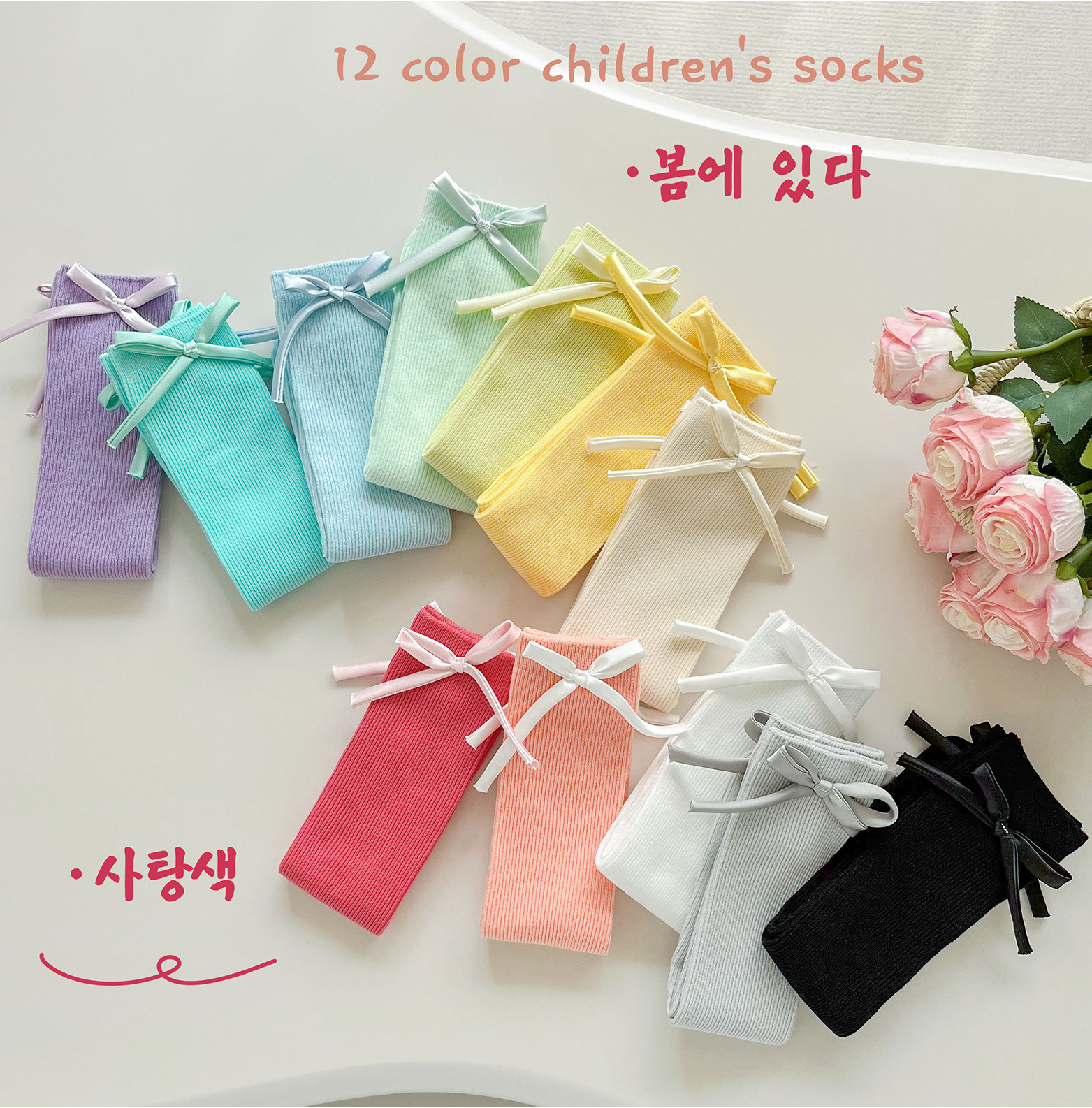 2024 년 어린이 양말 봄과 여름 활 한국 여자 중간 튜브 양말 면 스트레이트 양말 밝은 색상 스택 양말