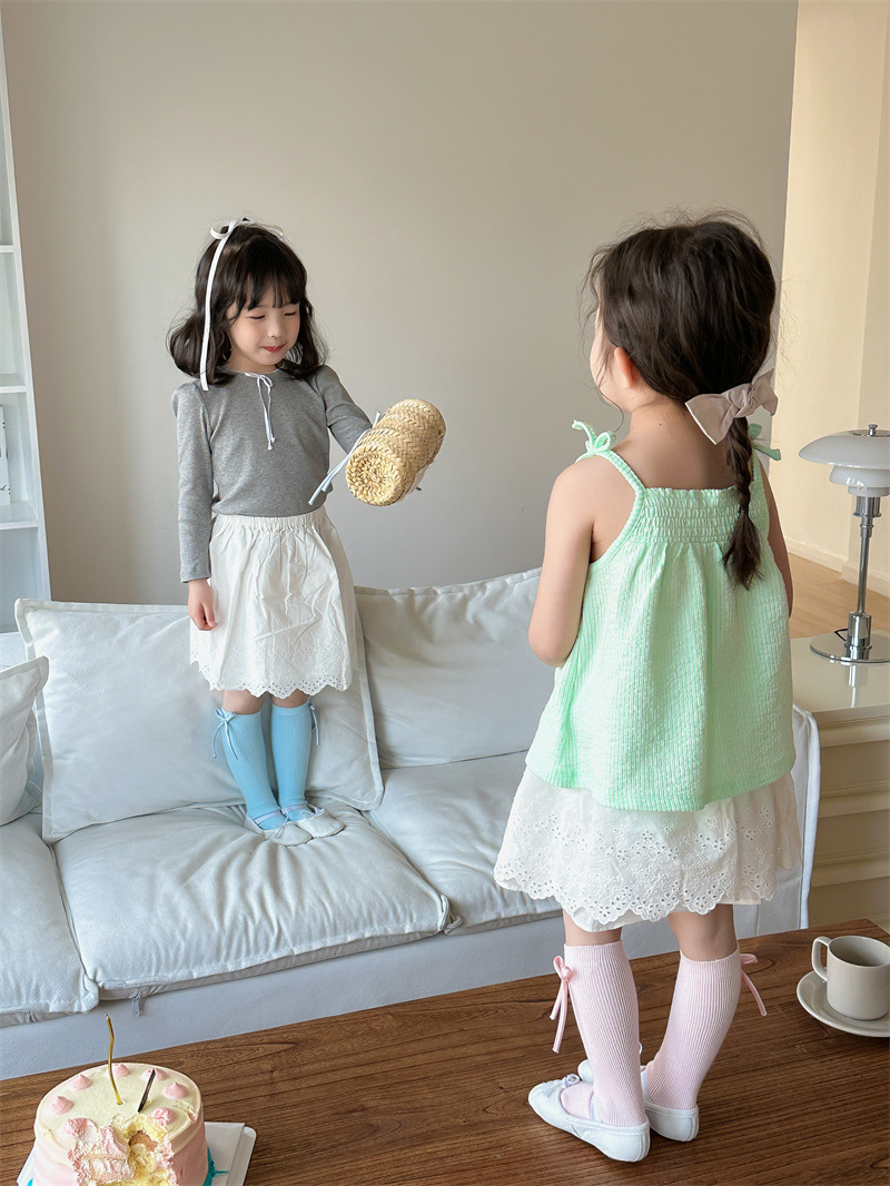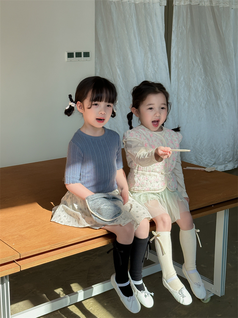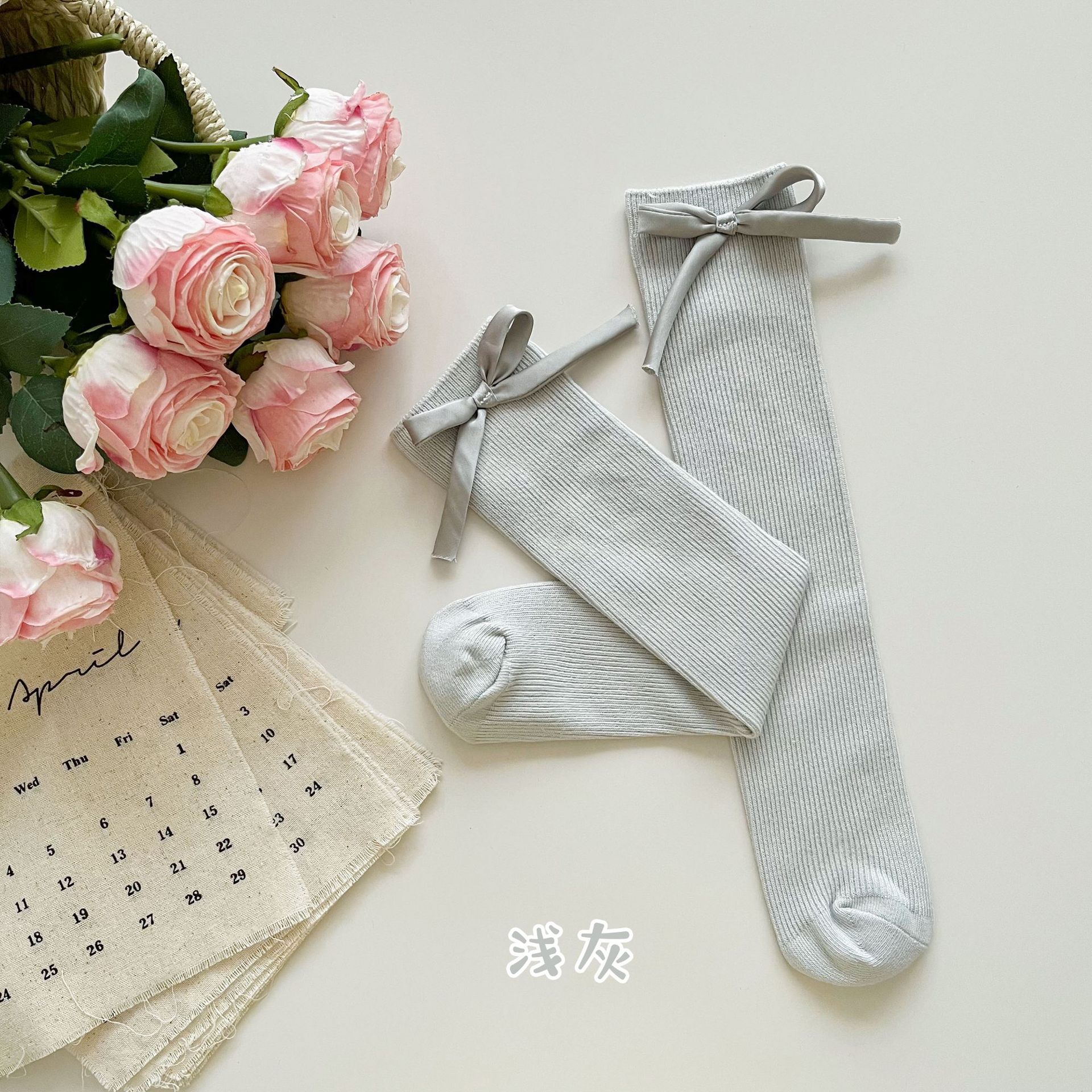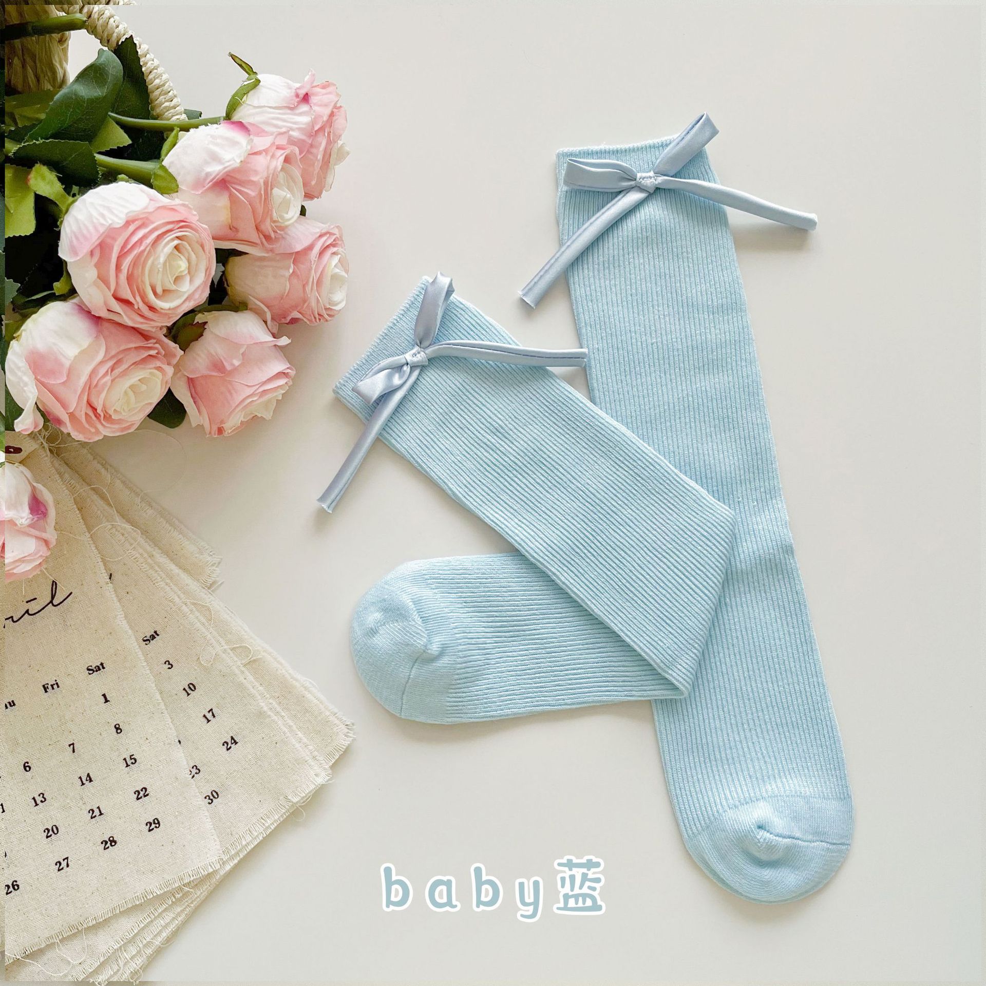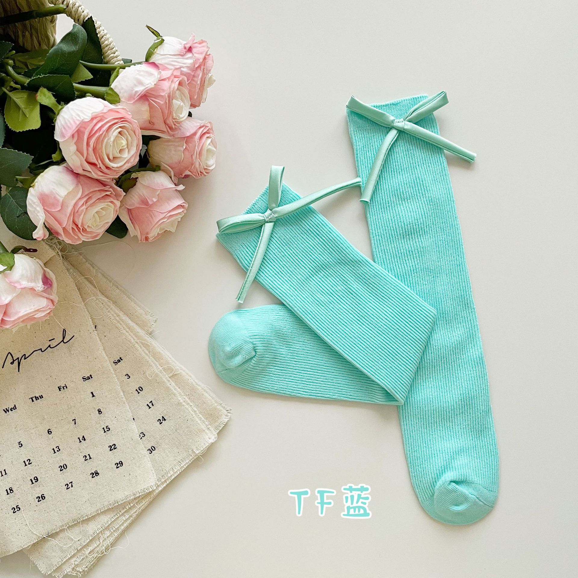 2024 년 어린이 양말 봄과 여름 활 한국 여자 중간 튜브 양말 면 스트레이트 양말 밝은 색상 스택 양말