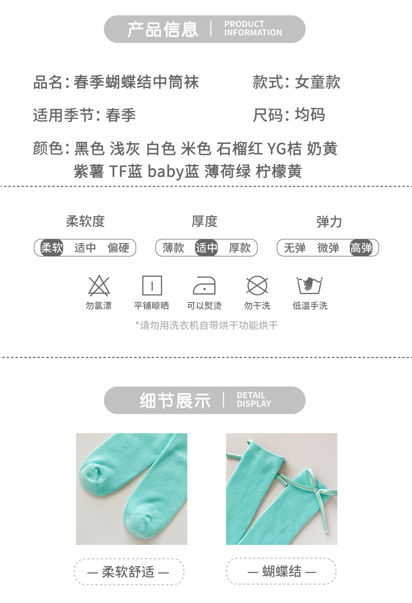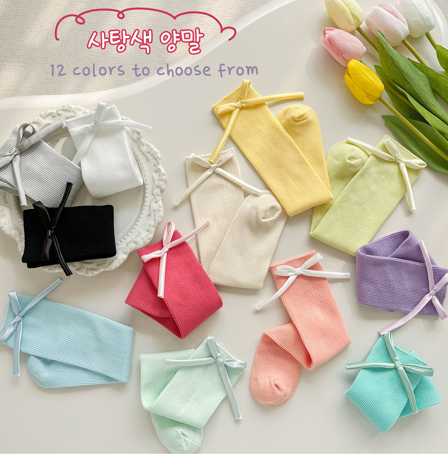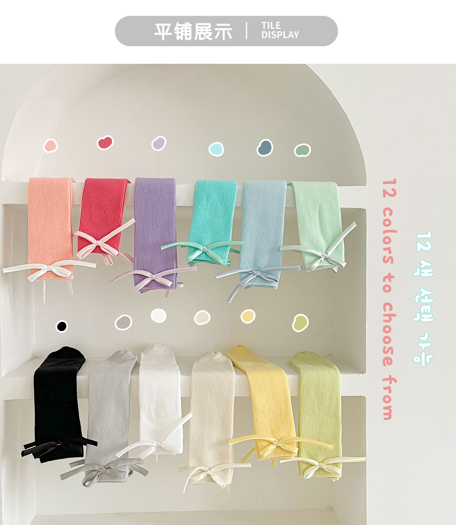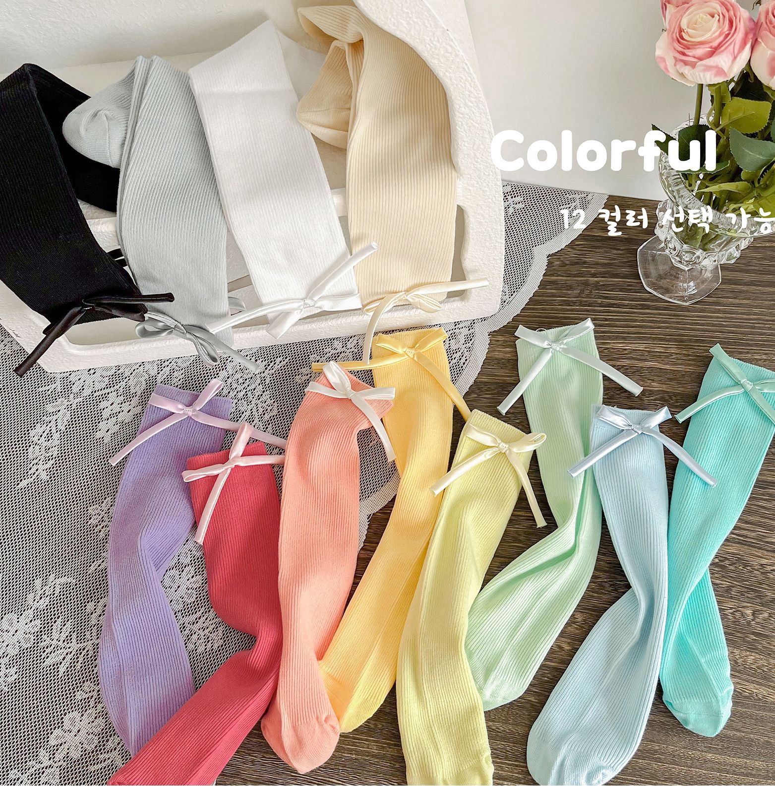 2024 년 어린이 양말 봄과 여름 활 한국 여자 중간 튜브 양말 면 스트레이트 양말 밝은 색상 스택 양말스토어 가기