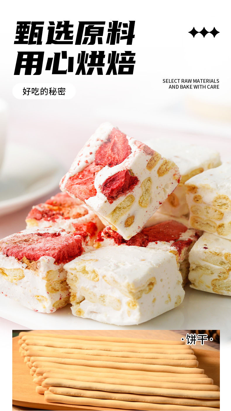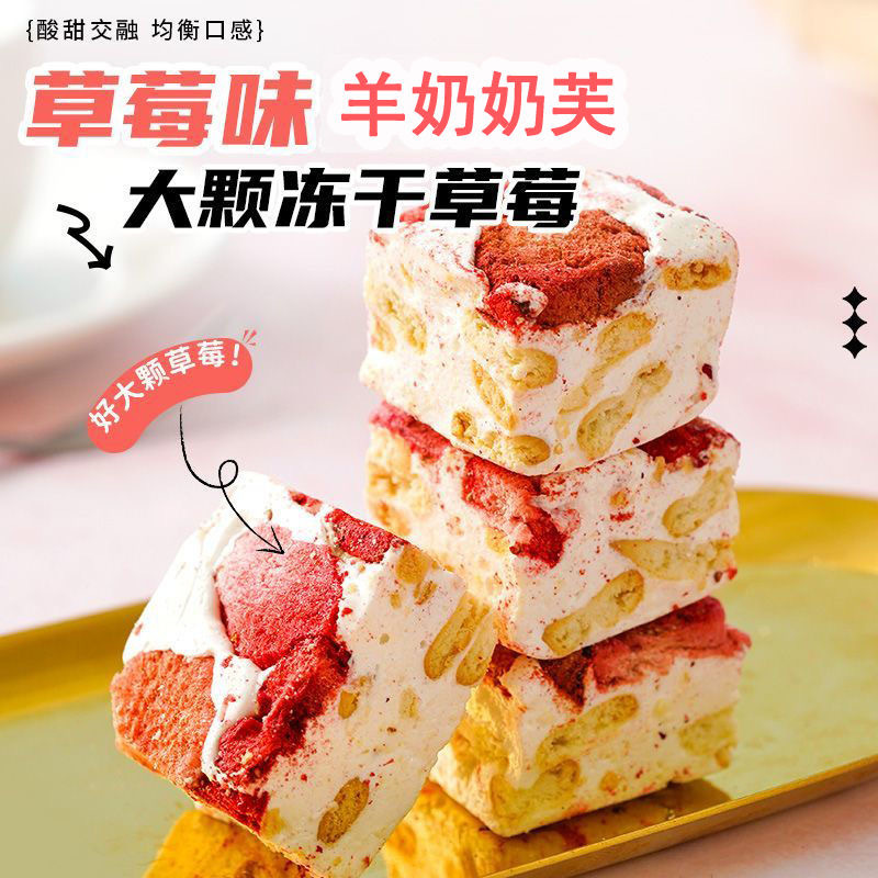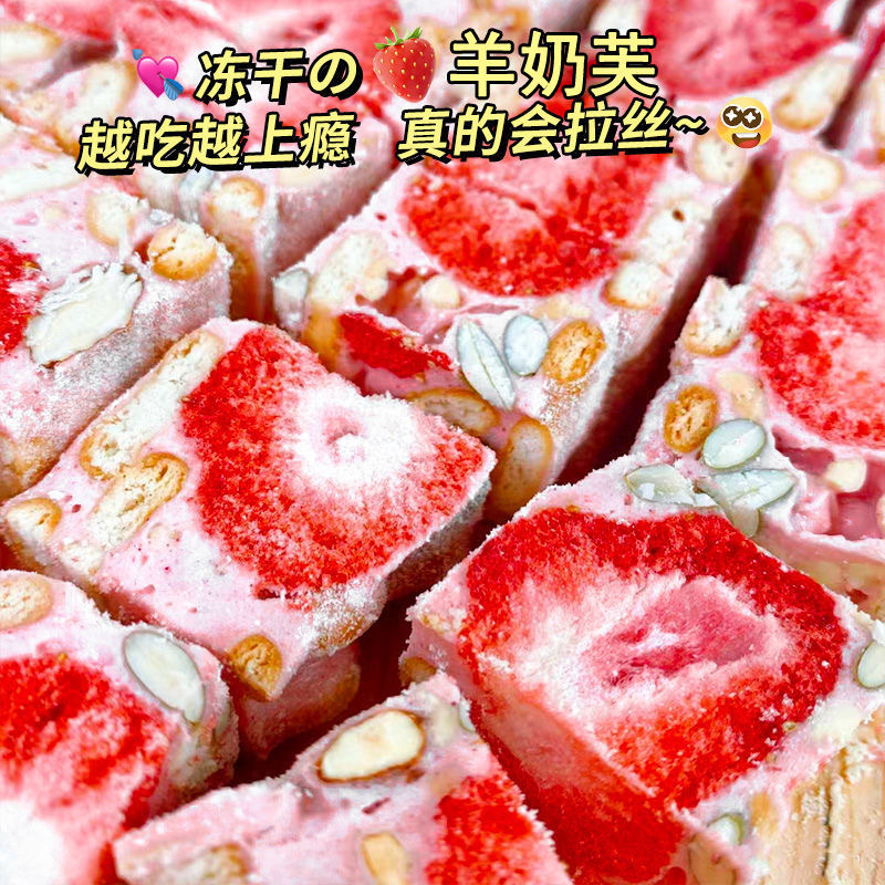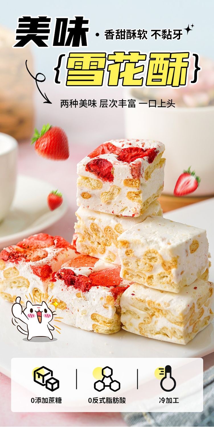 그물 빨간 딸기 우유 푸 냉동 건조 딸기 눈송이 선명한 전통 케이크 눈송이 바삭 바삭한 염소 우유 푸 머리카락 한 세대스토어 가기
