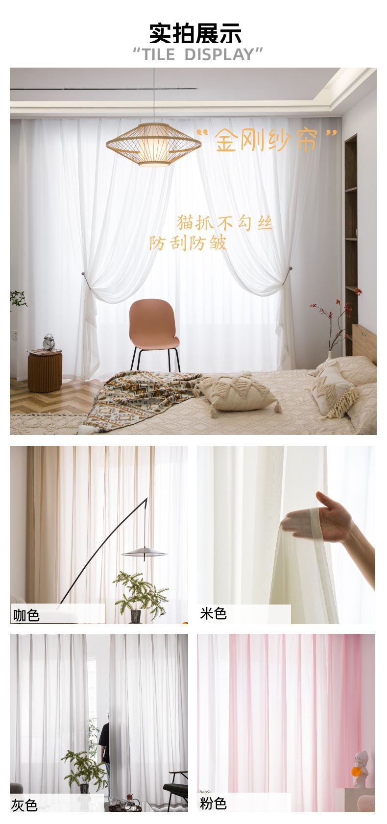 킹콩 원사 화이트 원사 스크래치 방지 원사 반투명 Hazy Sense 창 화면 거실 침실 발코니 창 화면