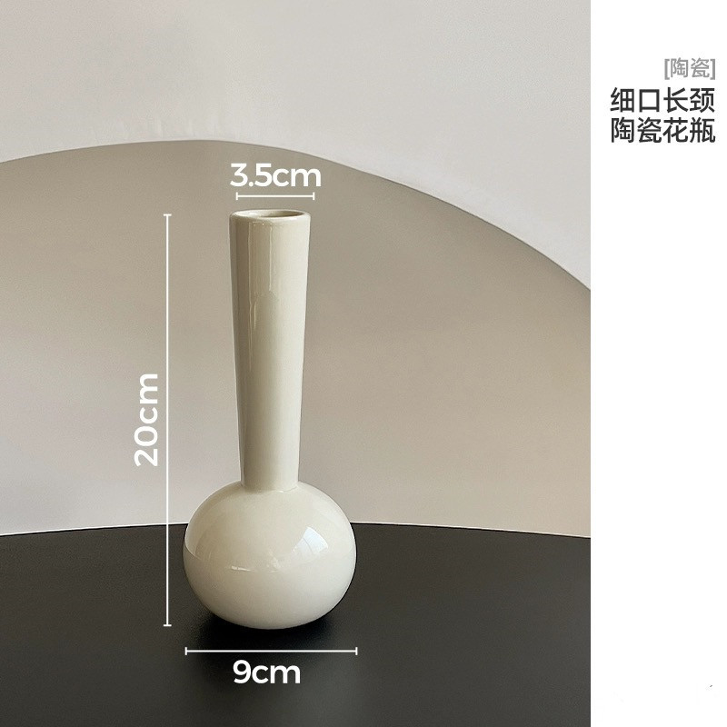 가벼운 럭셔리 심플 세라믹 꽃병, 고급스러운 스타일의 긴 목 세라믹 꽃병, 좁은 입구 세라믹 꽃병, 인조 꽃꽂이 용품스토어 가기