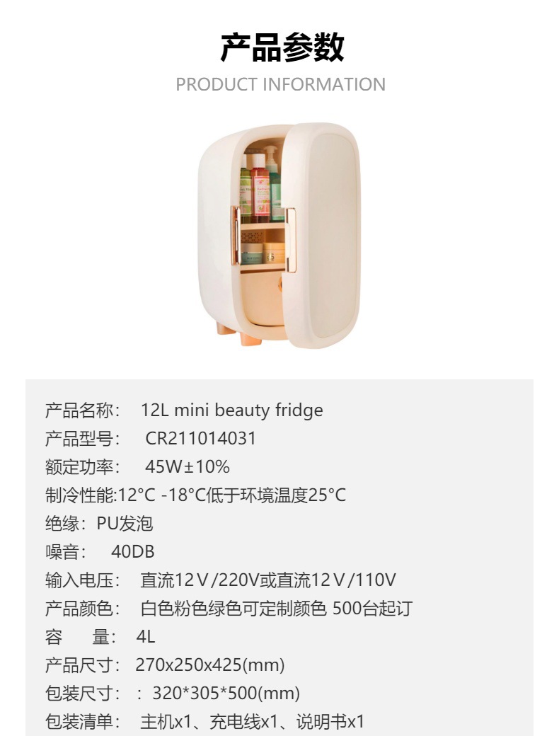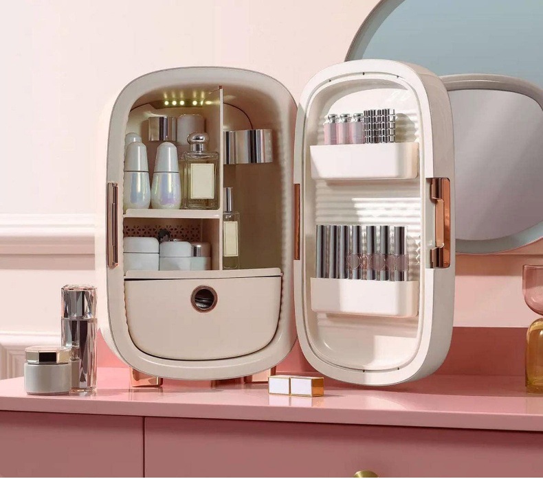 뷰티 메이크업 냉장고 12L 레트로 휴대용 냉장고 더블 도어 디지털 디스플레이 미니 화장품 냉장고 국경 직접 공급