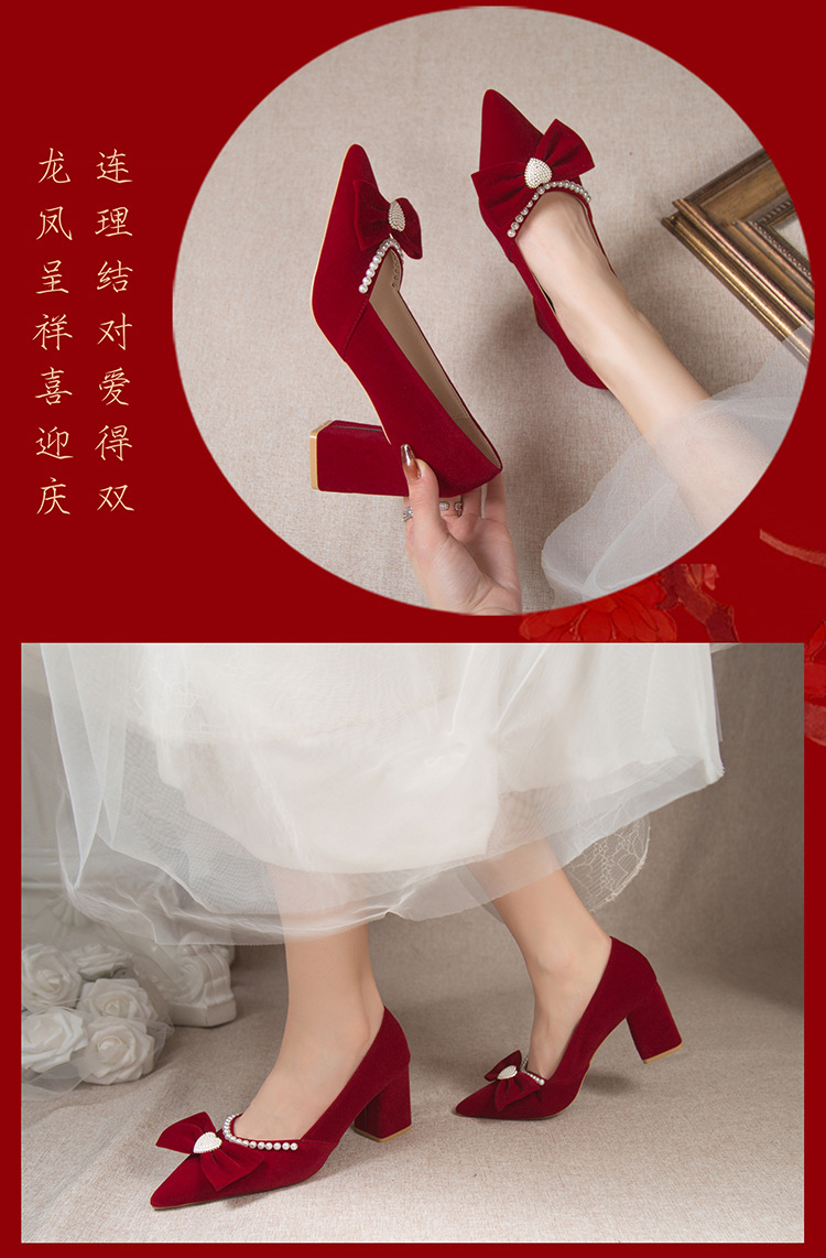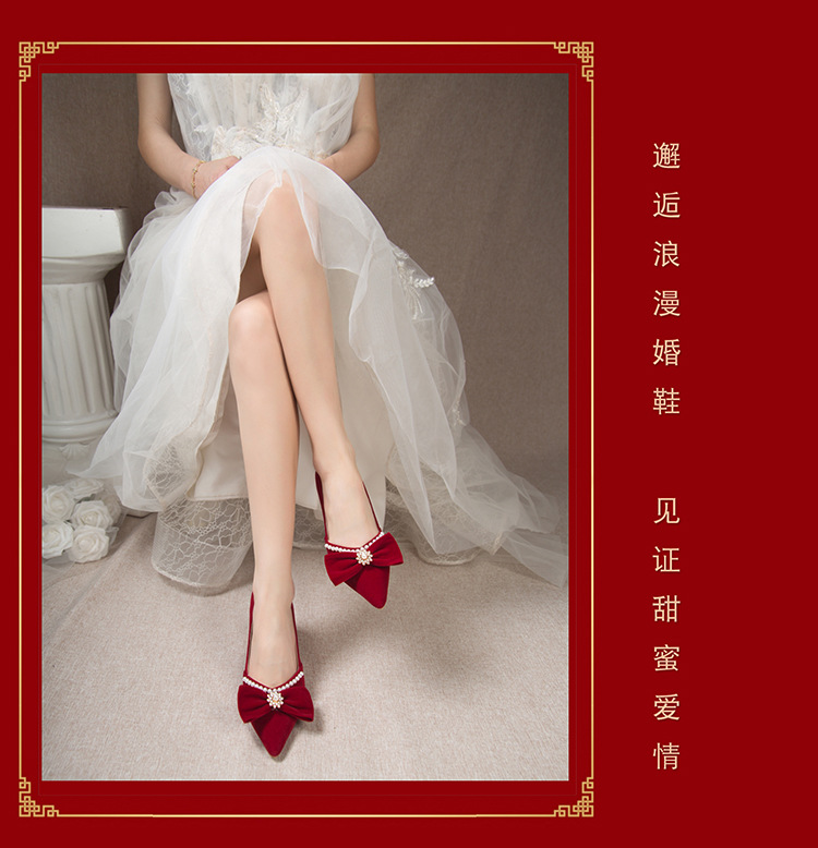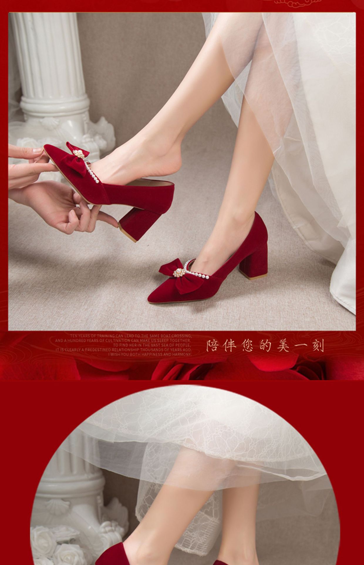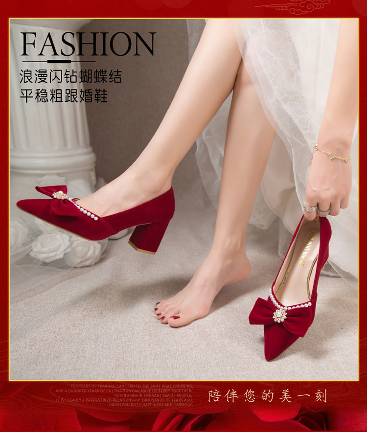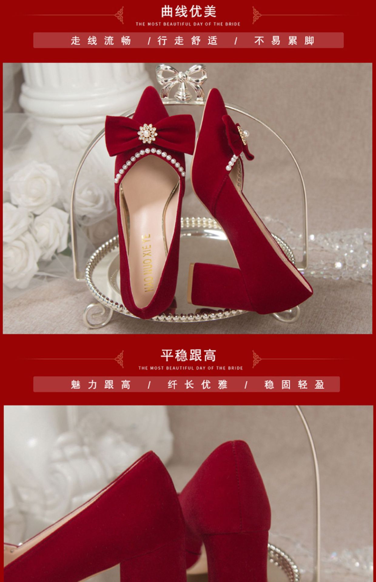 웨딩슈즈 신부화 도매 하이힐 통굽 신화 웨딩드레스 겸용 웨딩슈즈 발이 피곤하지 않은 편안한 스퀘어토
