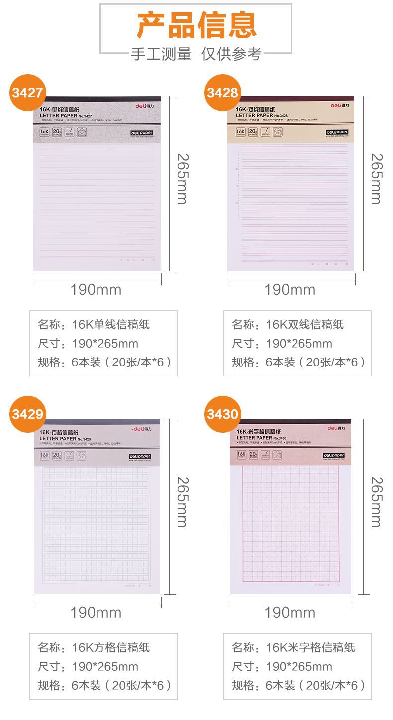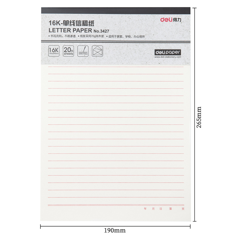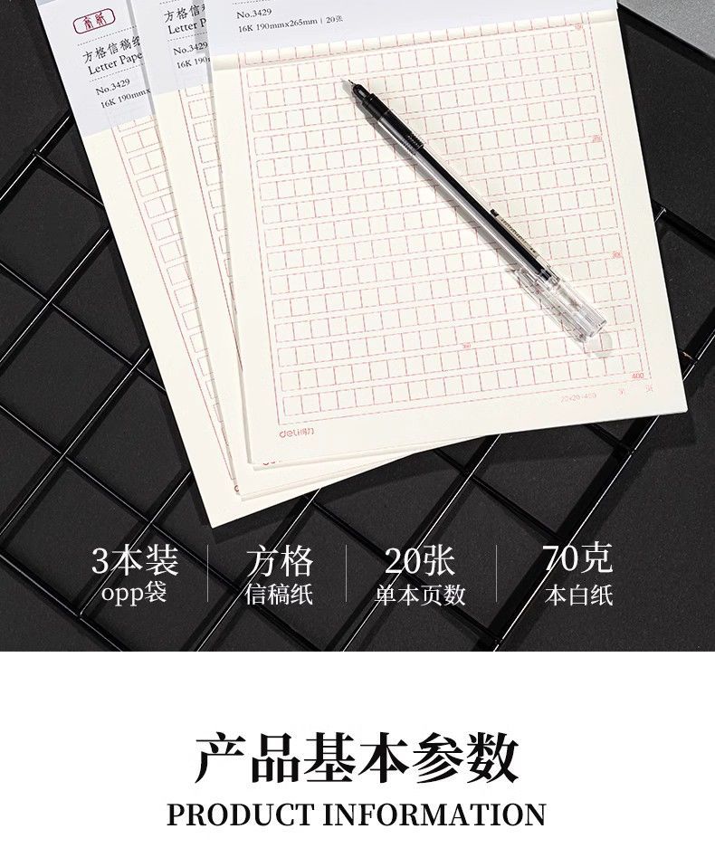 델리 편지 종이 구성 단일 줄 이중 선 사각형 초안 종이 학생 특별 16K 연습 쌀 단어 그리드가 문제 책을 수행합니다.