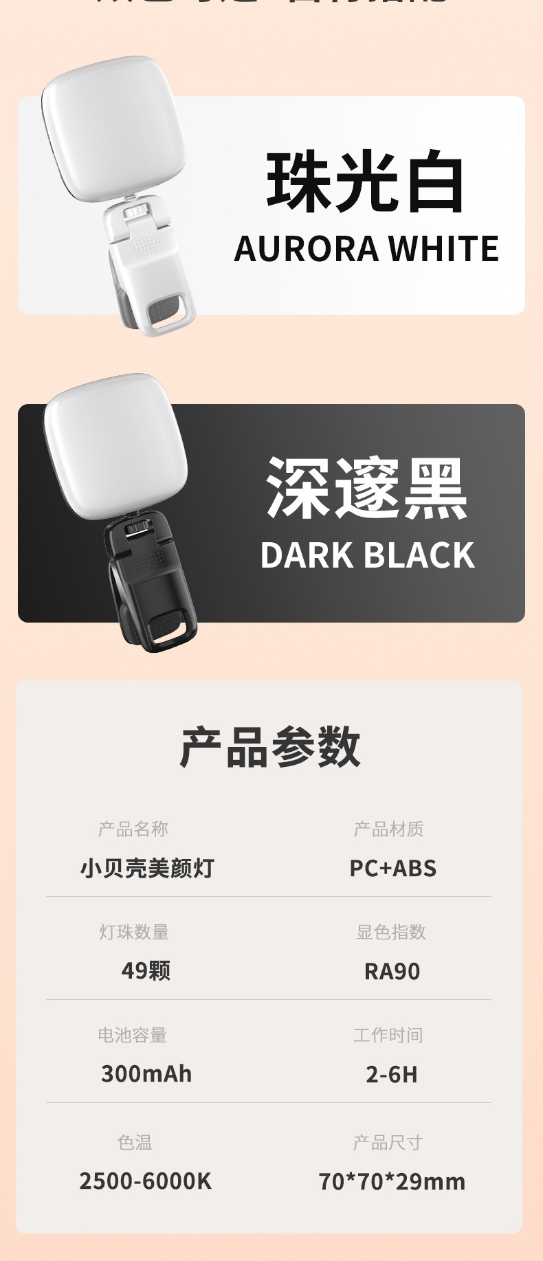 휴대용 삼색 온도 조절 가능 LED 클립 포켓 라이트, 셀카, 뷰티, 라이브 방송용 보조광