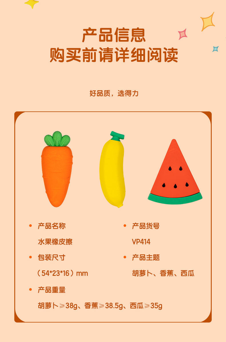 델리 빅 맥 과일 지우개 대형 당근 수박 바나나 깨끗한 고무 학생 고무 VP414스토어 가기