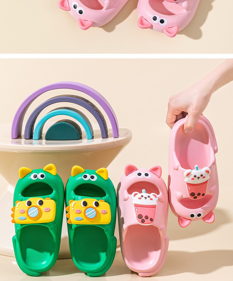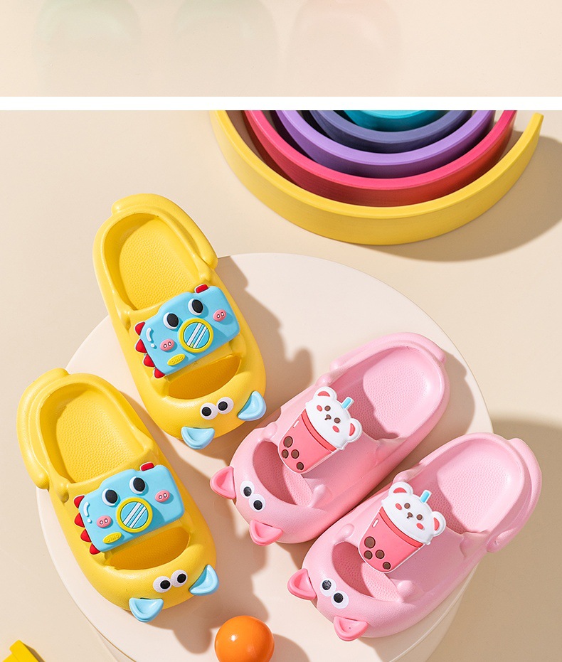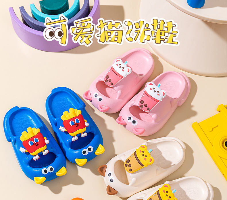 2024 년 여름 새로운 귀여운 어린이 샌들과 슬리퍼 고양이 신발 미끄럼 방지 소프트 솔 아웃웨어 안티 킥 슬리퍼