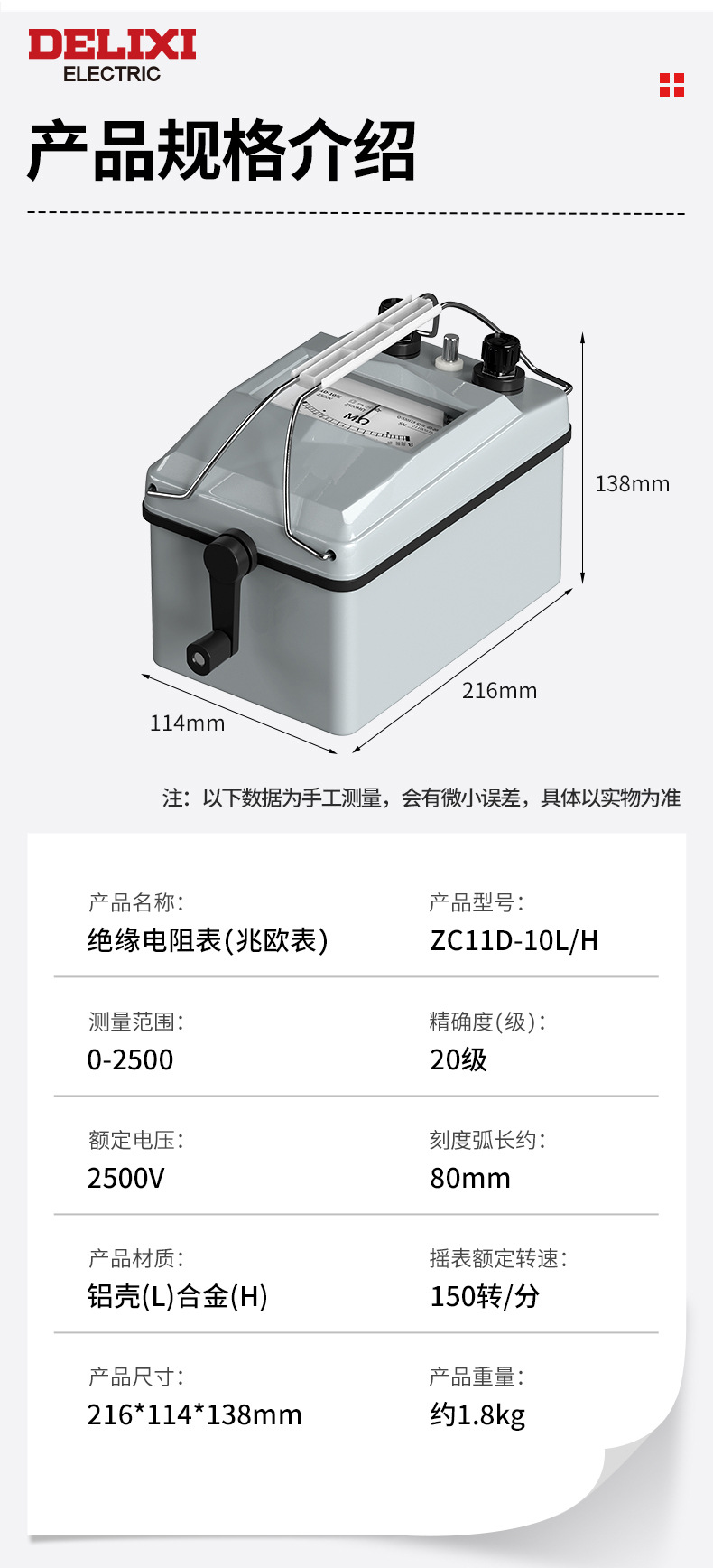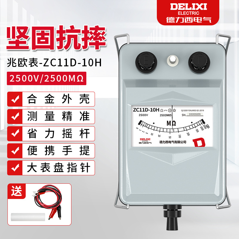 Delixi megger ZC11D-10 포인터 핸드 크랭크 미터 2500V 핸드 크랭크 합금 절연 저항 테스터스토어 가기